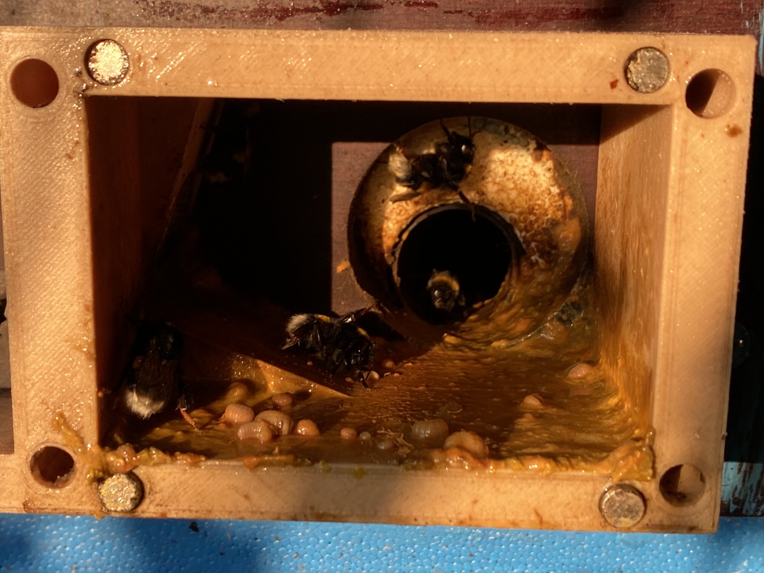 , mittlerweile werden dort auch immer einige herausgeräumte Hummellarven entsorgt – siehe Klo-Foto.