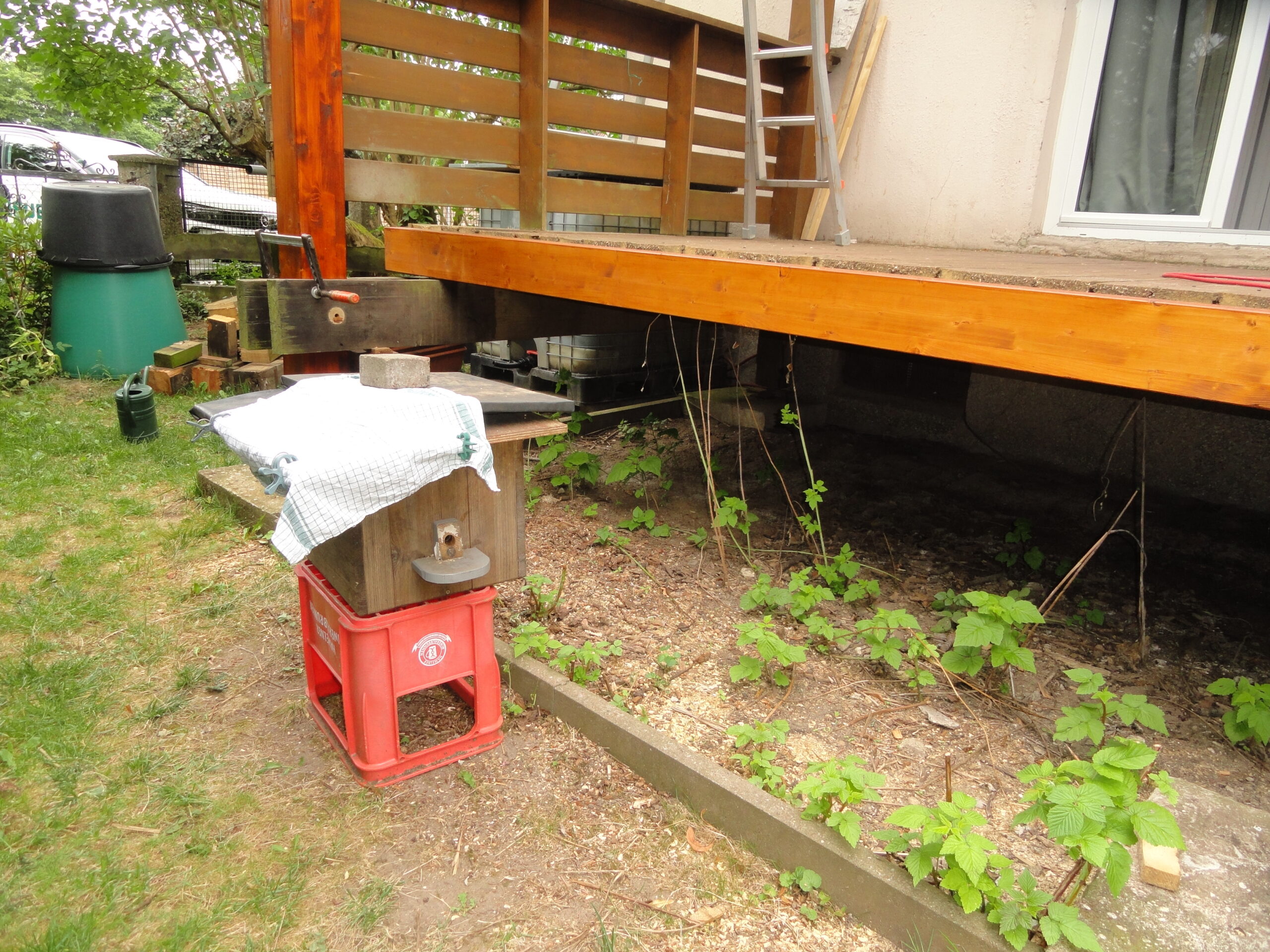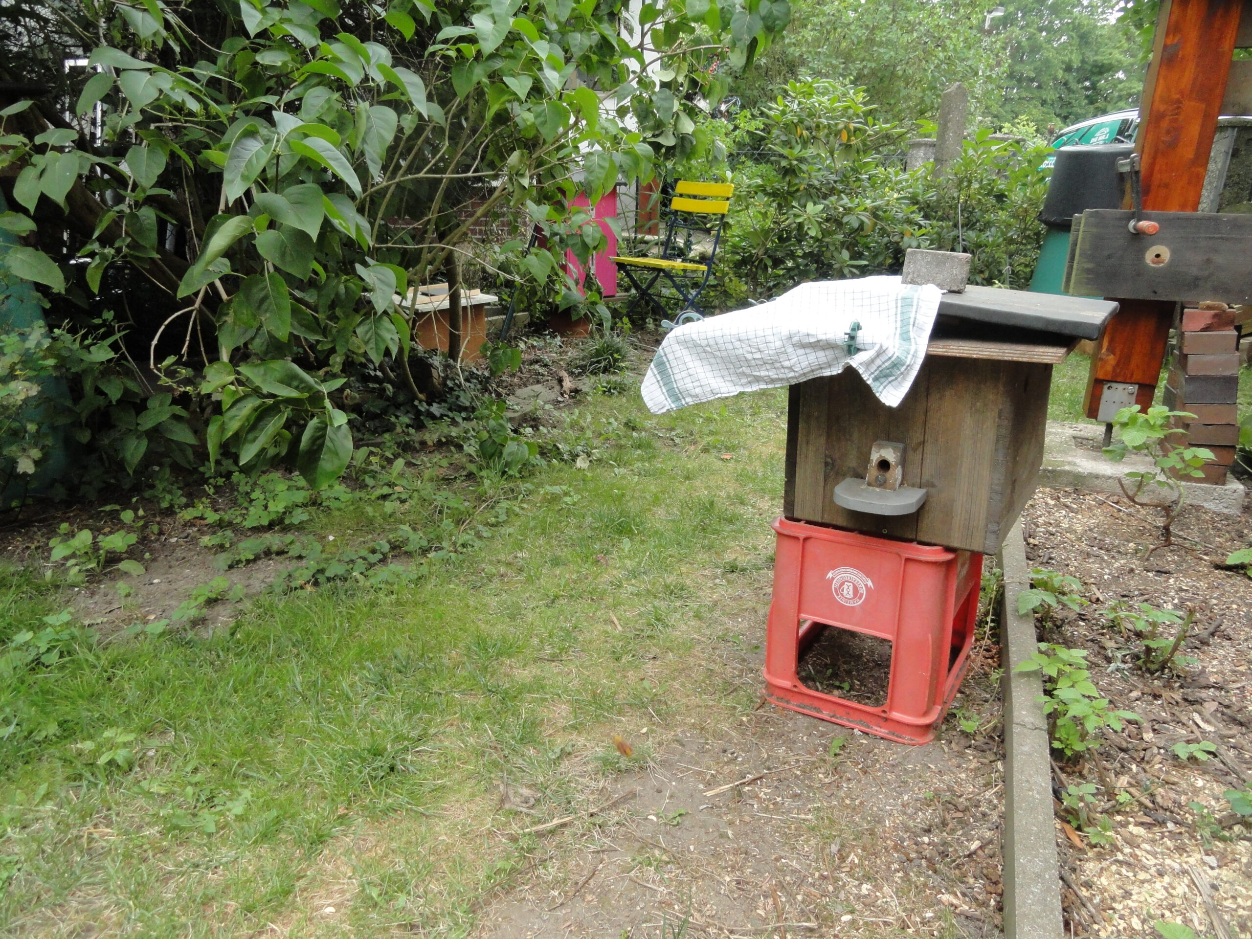 Bei der Aktion habe ich ein Ackerhummelnest gefunden. Die haben es sich im Ingelkasten gemütlich gemacht. Auf den Igelkasten sollten eigentlich die Hornissen.
