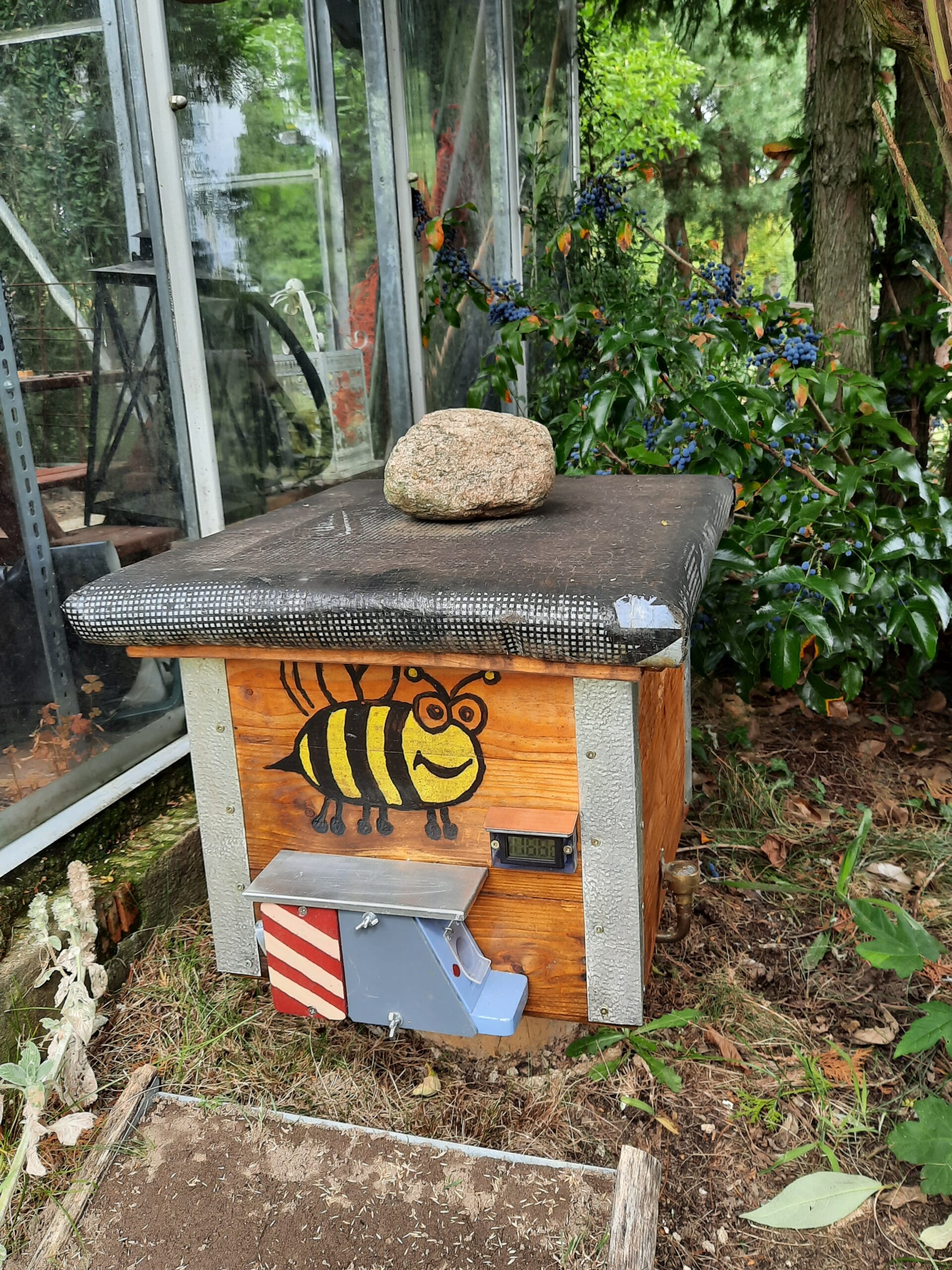 Das Hummelhaus wurde gereinigt, die Lüftung überarbeitet und ein Eingang mit einer zusätzlichen Wachsmotten-Sperre montiert. Gleichzeitig will ich auch die Temperatur im Inneren im Blick behalten.