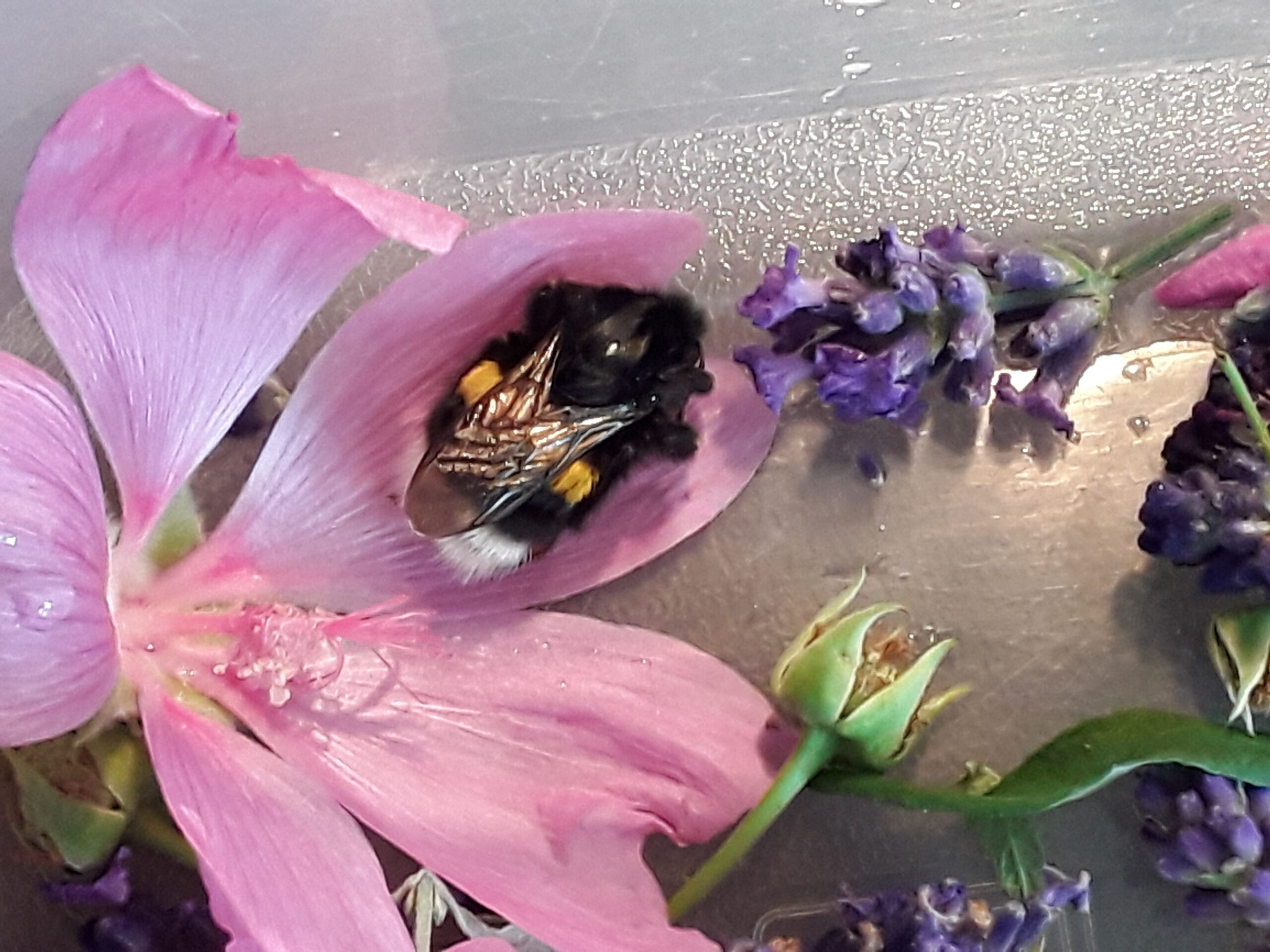 MopsymurmelyForenmitgliedHallo liebe Hummelfreunde, seit gestern, nachdem ich sie wieder in den Balkonkasten gesetzt habe war sie nicht mehr zu sehen…habe heute nochmals alles abgesucht..nichts..dachte schon jetzt istalles vorbei, aber als ich vor 2 Stunden zur Balkontür ging, habe ich meinen Augen kaum getraut, sie kam auf den Fliesen direkt auf mich zu..da war die Wiedersehensfreude groß, habe nicht mehr damit gerchnet..sofort eine Zuckerlösung hergestell, von der sie mir vom Teelöffel etwas abnahm, und gleich wieder erschöpft einschlief..habe sie wieder in die Tupperschale gelegt mit frischen Blüten, in die von der Bechermalve kroch sie gleich rein und schläft seit dem dort drinnen..ihre Flügel sehen besser aus…nun kommt das nächste Problem,denn morgen Nachmittag schon soll es stürmen, regnen und gewittern..hier oben auf der Terasse ist es immer sehr sehr wild mit dem Sturm..was mache ich denn da? Im Tupperbehälter schützen, das geht nicht, da will sie wieder raus, rutscht ab und liegt auf dem Rücken..und wieder in den Blumenkasten bei Unwetter..ohje bin ratlos..sorry aber das ist das erste Mal eine “Hummelrettung” für mich, und ich habe so gar keine Ahnung von all dem, entscheide nur mit dem Herzen, und das kann ja auch falsch sein..was würdet ihr mir raten? Ich kann sie doch geschwächt nicht Sturm und Regen aussetzen..