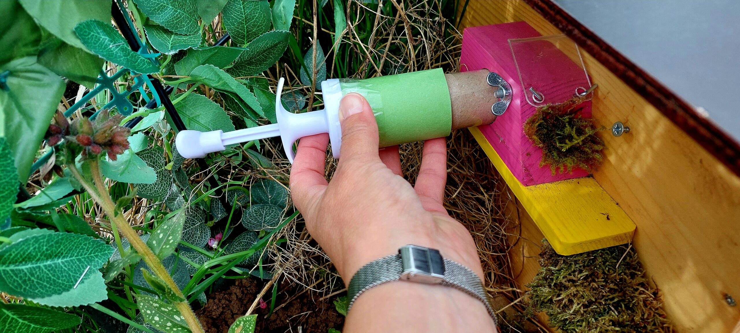 Beim Einsetzen der Hummelqueen möchte ich sie wieder direkt vorne durch die Papierrolle einsetzen etc. Dieses Loch führt dann aber nicht geradeaus ins Innere des Nistkastens, sondern biegt nach rechts ab? Kann sie das etwa irritieren?