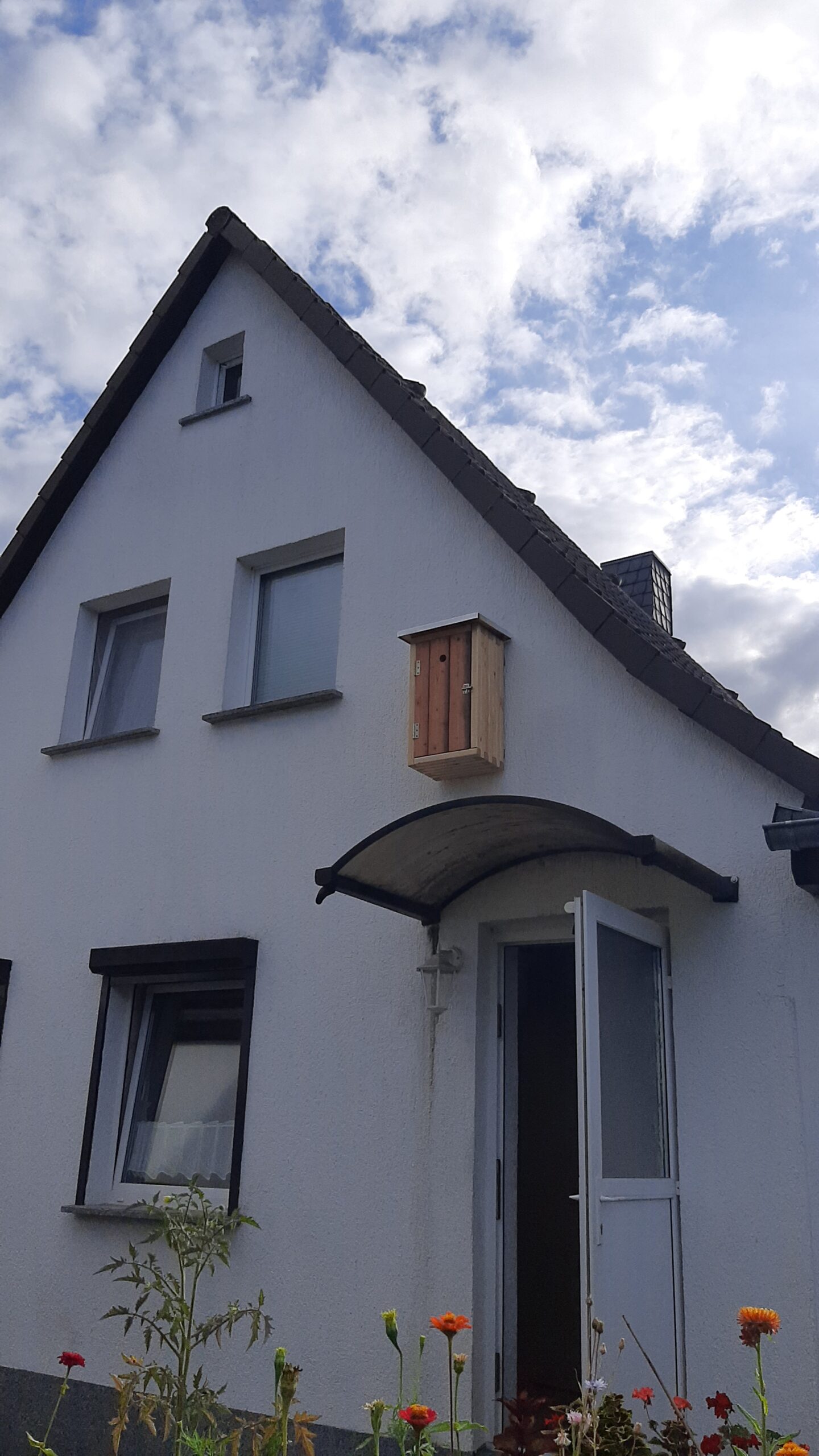 @Stefan – vielen Dank. Da jedes Frühjahr Hornissenköniginnen rund um Haus und Anbau auf Nistplatzsuche sind hoffe ich das der Kasten an dieser exponierten Stelle besonders gut gefunden wird.