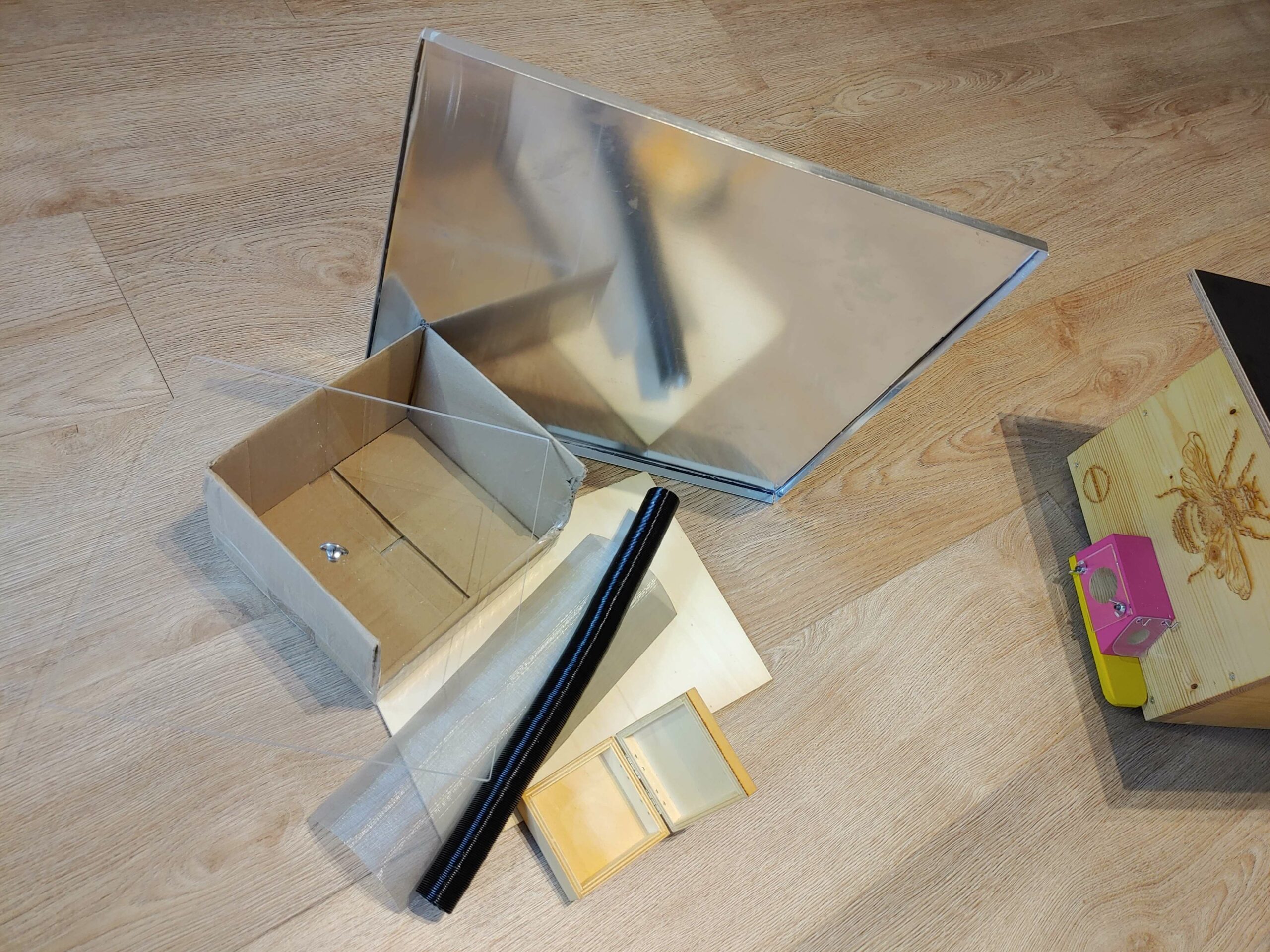 – ein 40x40cm Aludach gefertigt und mit Abstand auf der Siebdruckplatte befestigt,