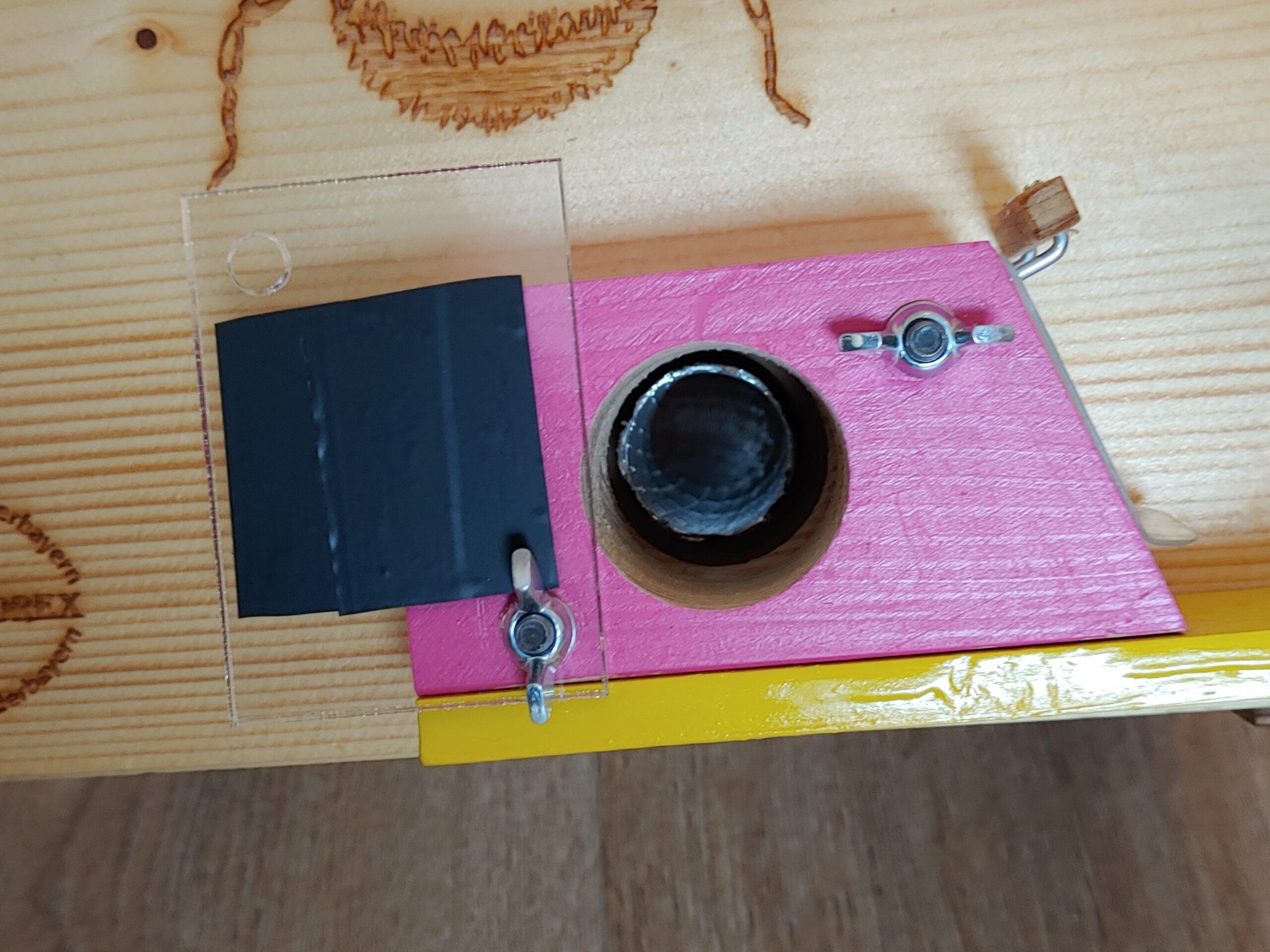 Ich könnte das mit Flügelmuttern befestigte Plexi durch ein Brettchen mit Gaze ersetzen. Meinst du das?