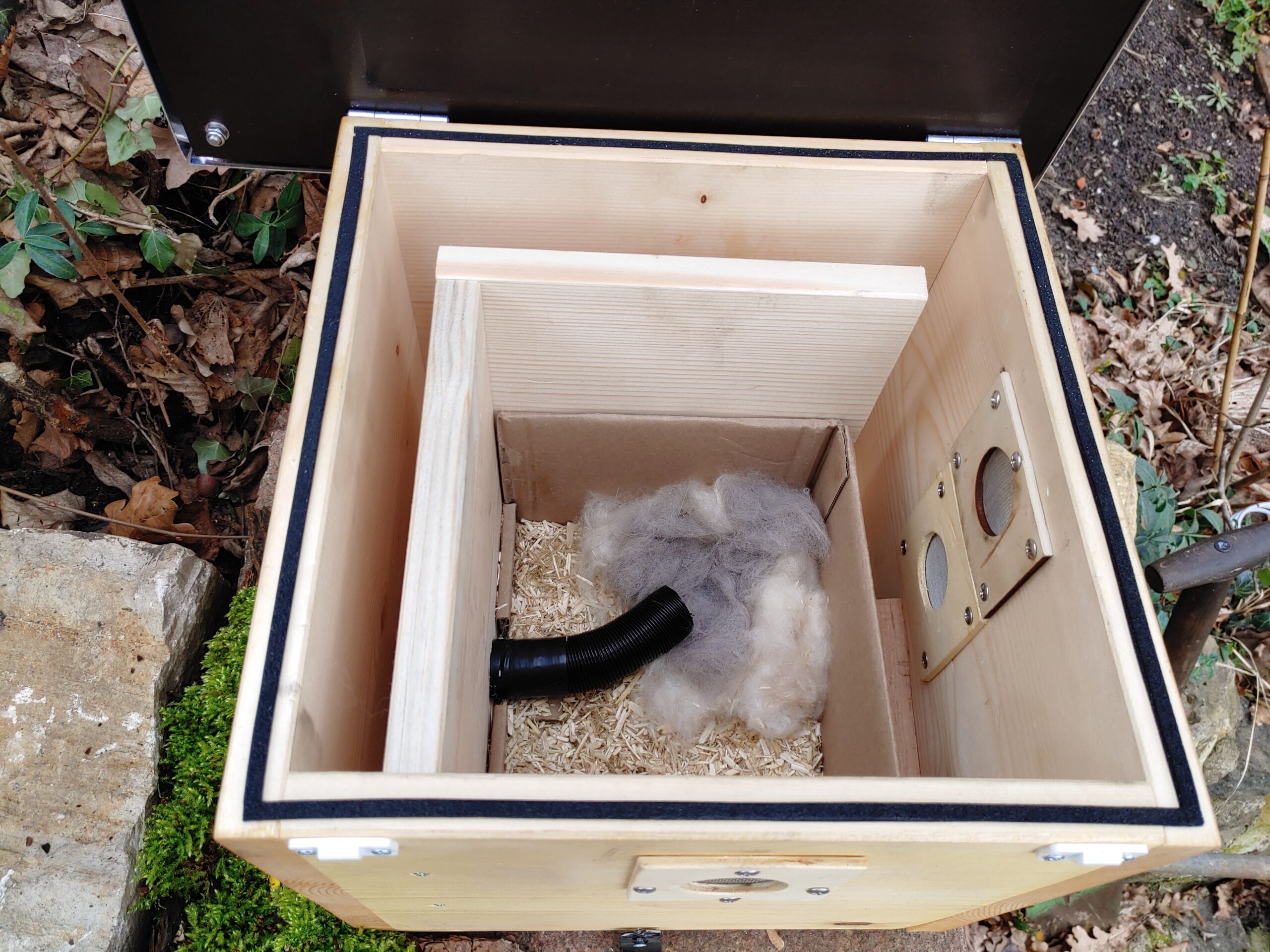 – einen Wachsmottenfalle vor die zweite Belüftung gesetzt,