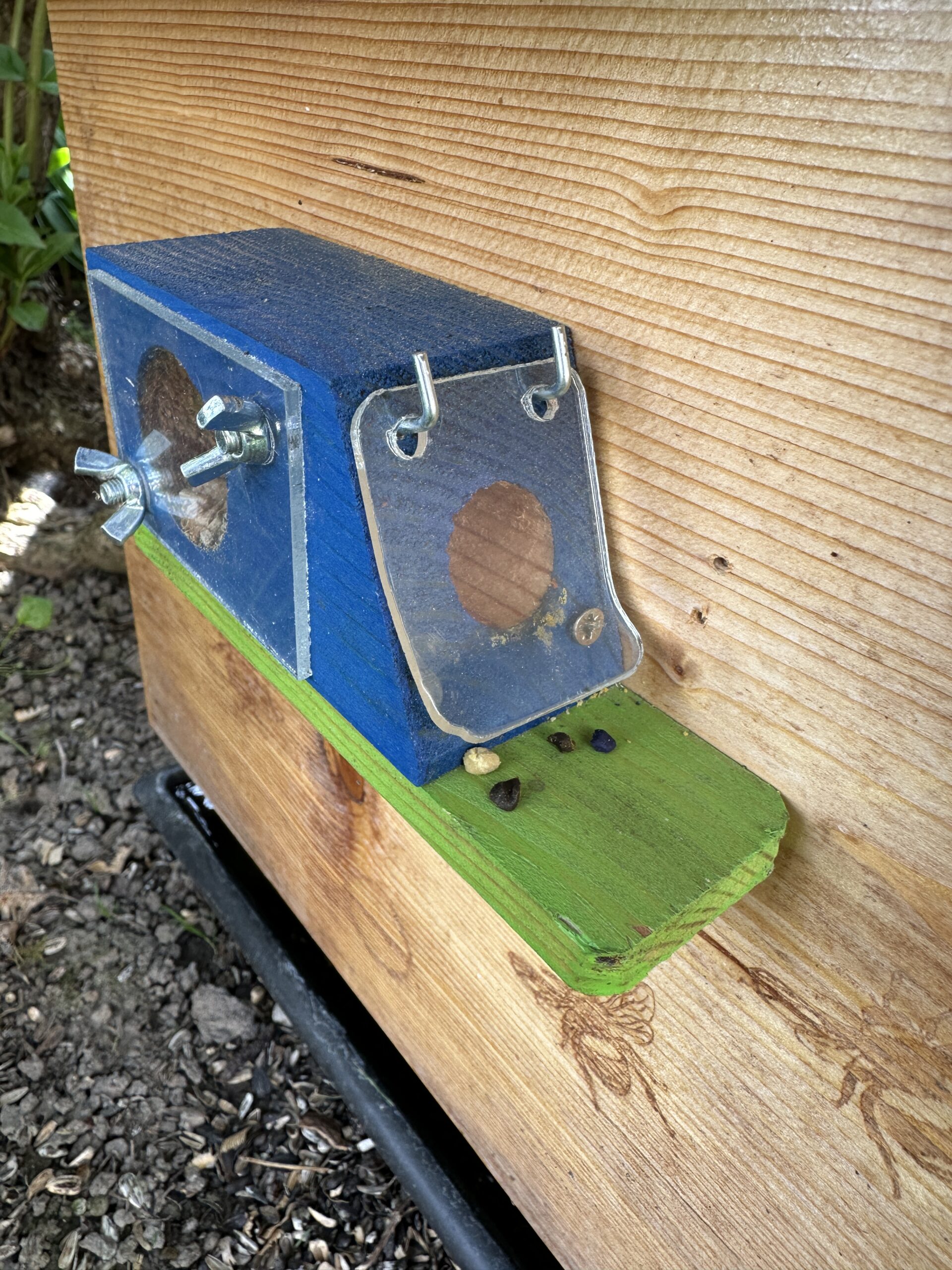 – zwischen die innere Plexiglasscheibe und den Nestraum habe ich eine passgenau zugeschnittenen Pappe gelegt (wegen dem Schwitzwasser)