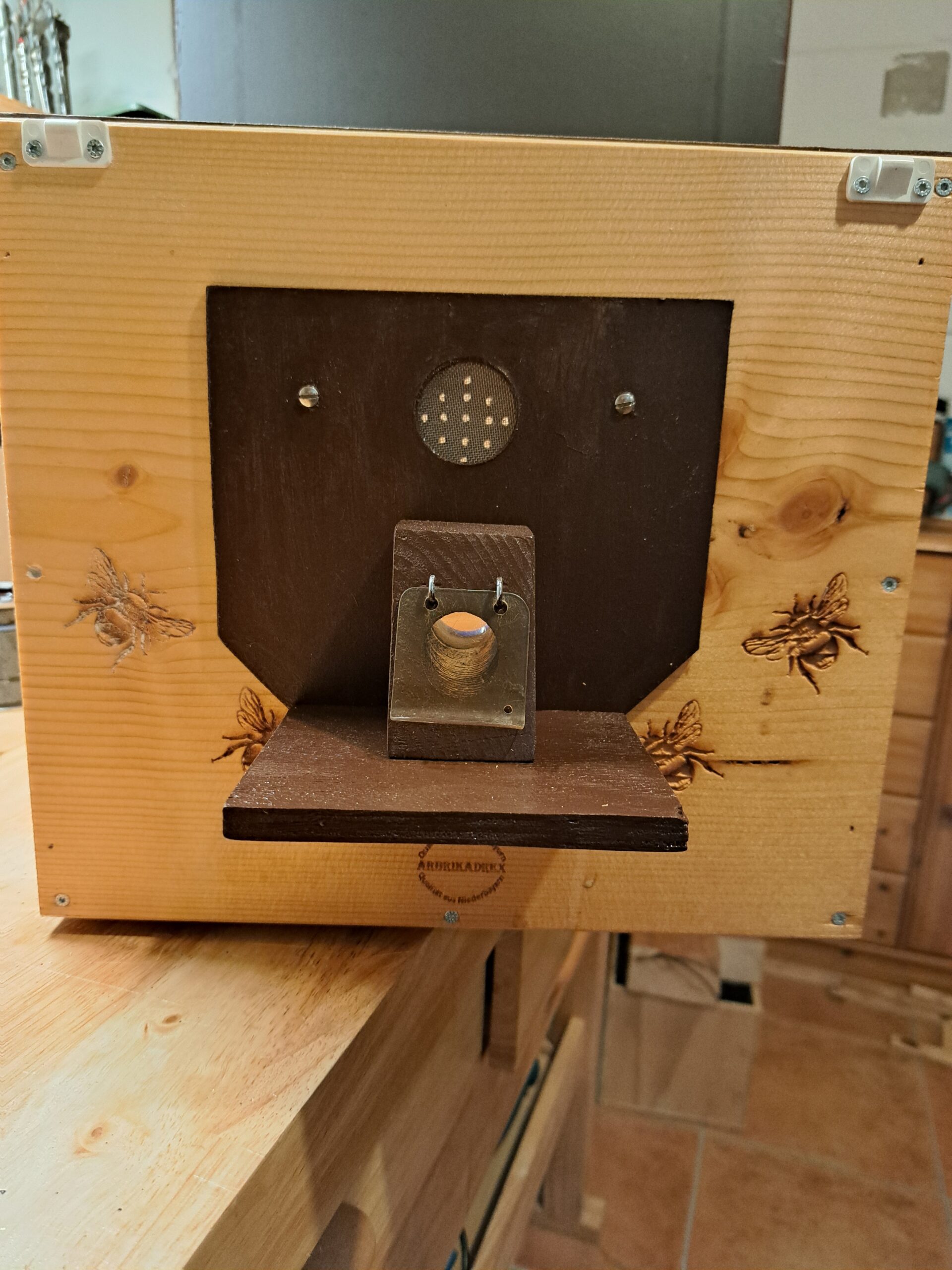 Das ist wirklich eine perfekte Belüftung für einen Holz-Hummelkasten. Und dazu die Höhe des Holz-Innenkastens nur bis zur Unterkante der äußeren Lüftungslöcher, sodass die Luft permanent über das Lüftungsgitter streifen und zirkulieren kann. Hervorragend!
