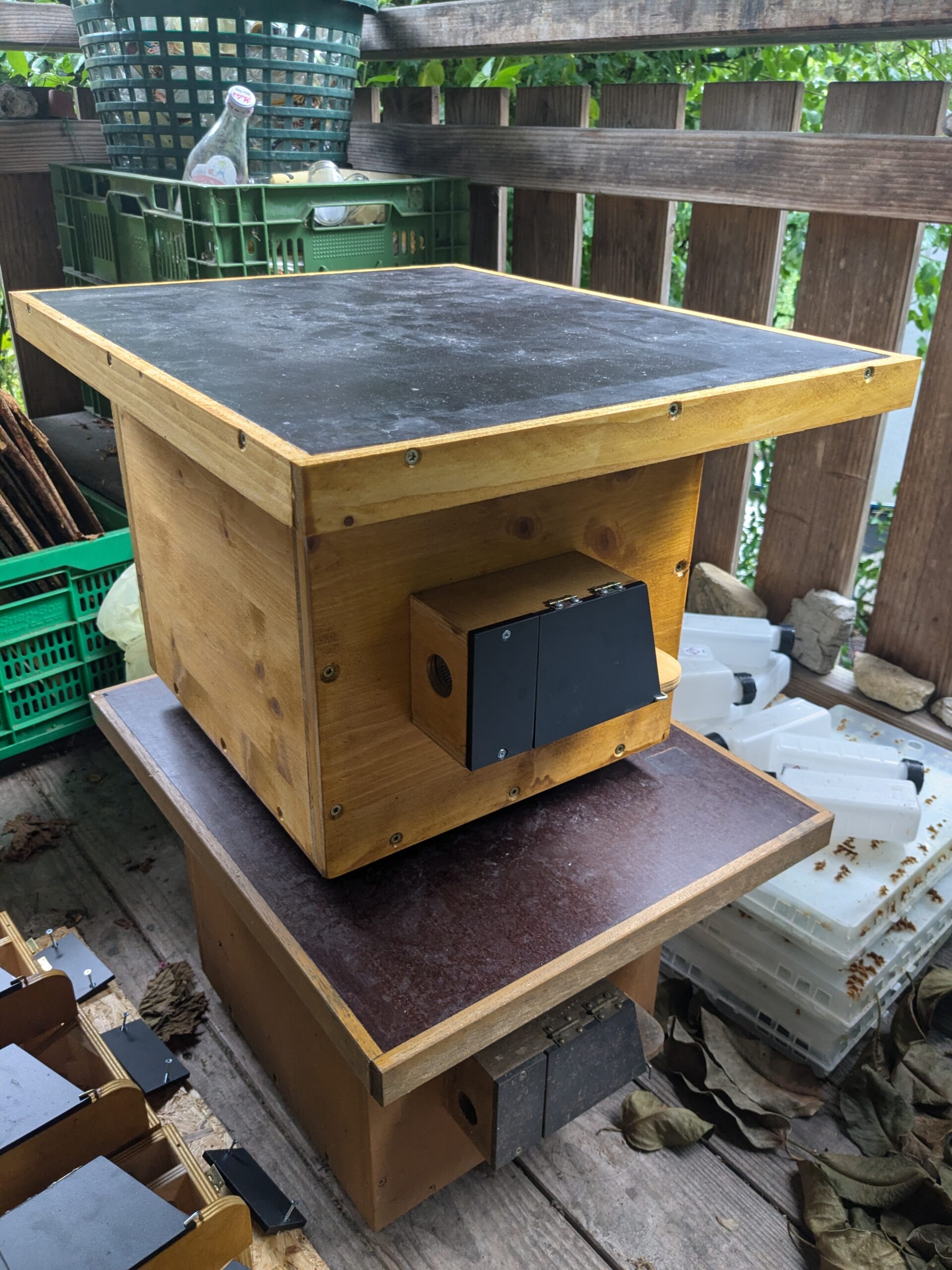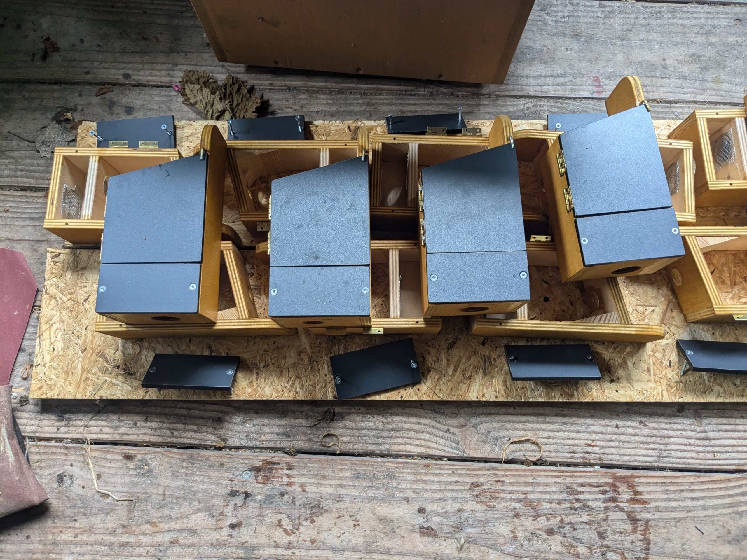 Da ich mir vor zwei Jahren gebraucht einen Kasten vom Hummeltischler gekauft habe und in diesem seit dem zwei sehr erfolgreiche Hummelvölker herangewachsen sind, hat mich im Sommer der Ehrgeiz gepackt aufzurüsten. Als Student konnte ich es mir aber nicht leisten eine größere Anzahl an Kästen zu kaufen, weshalb ich beschlossen habe selbst nach den hier erhältlichen Plänen zu bauen. Aus einem ersten Prototypen wurde schnell eine kleine Serie von 14 Stück die noch nicht ganz vollendet ist. Jetzt habe ich mir überlegt die Hälfte dieser Kästen zu einem Preis zu verkaufen, der meine Materialkosten deckt.