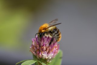 Und im Rotklee dann ein ziemlich farbenfrohes Exemplar. Das dürfte ein Drohn sein?