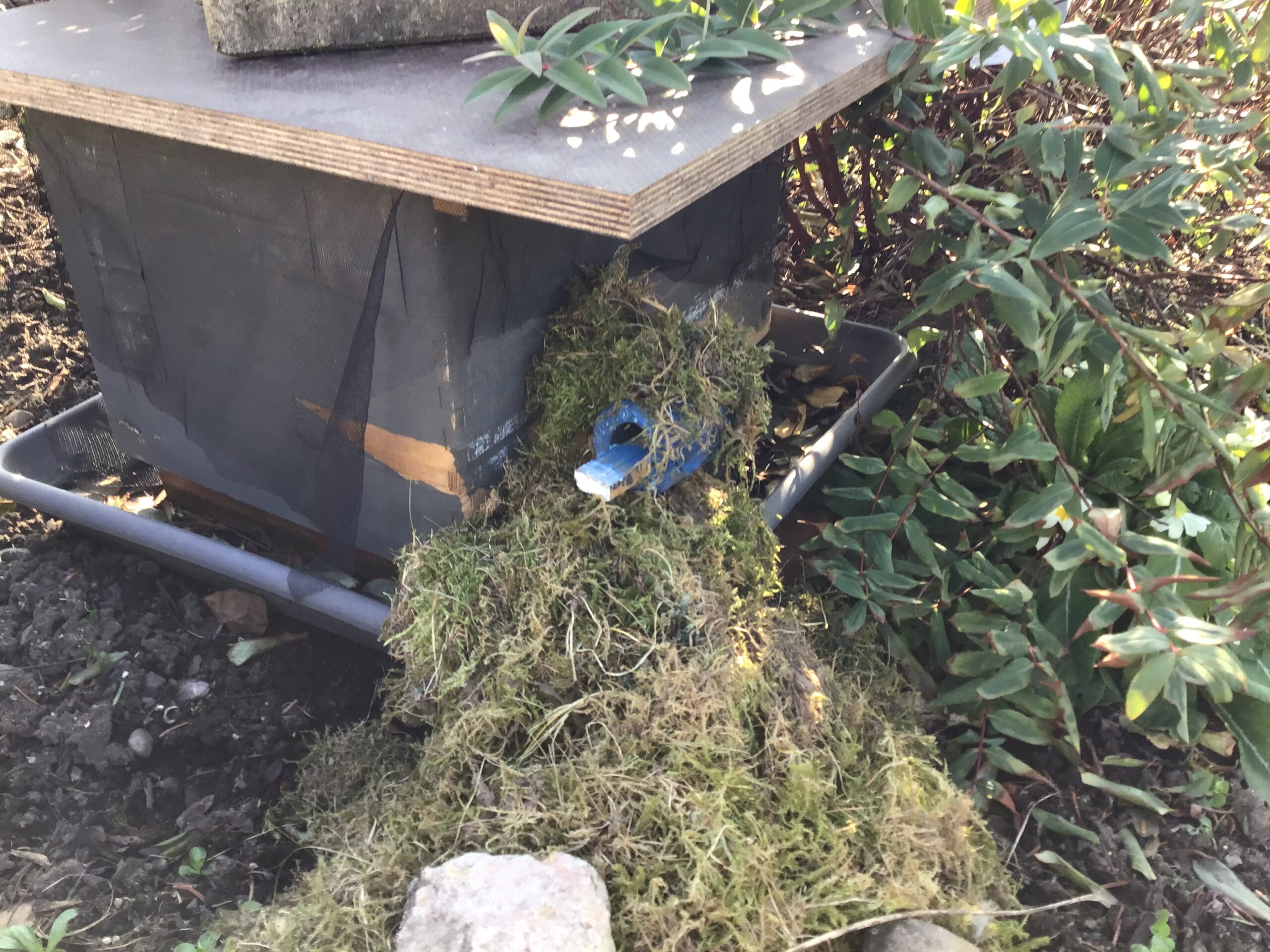 dass mit dem Foto wird schwierig (muss erst gucken wie das hier geht) – aber das Hummelhaus etwas zu verkleiden ist kein Problem, der Rasen ist trotz vertikutierens noch voller Moos