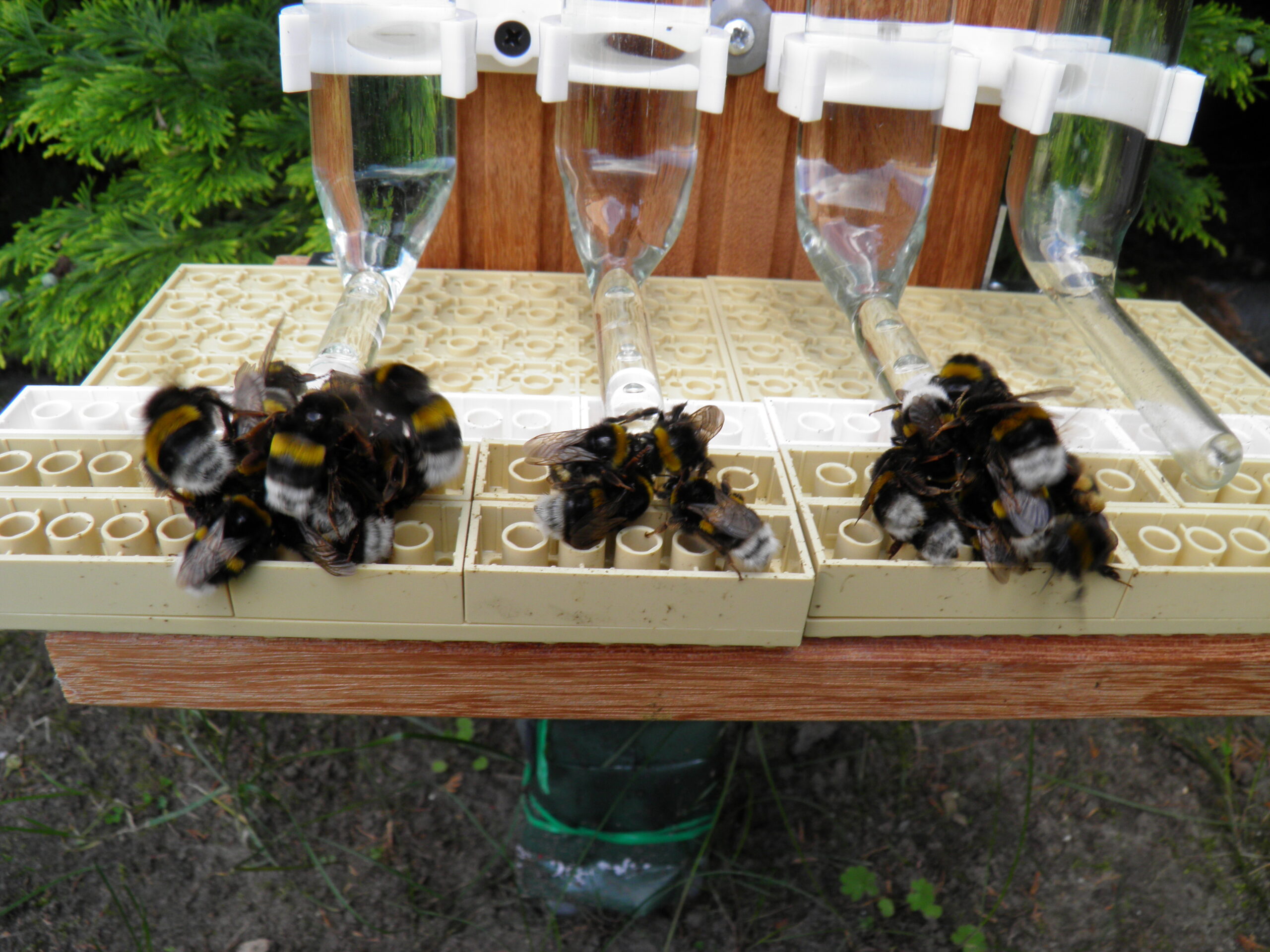 Die Zuckerlösung gebe ich in einen Plastikverschluß von nem Tertrapack. Dann stelle ich ihn in den Hummelkasten nahe an den Ausgang. Das bisserl Störung macht der Hummel nichts, dauert ja keine 10sec. Das mache ich grundsätzlich, so müssen die Königinnen nur noch zum Pollensammeln nach außen. Also so gut wie gar nicht. Die werden dann auch nicht von Meisen oder Autos erwischt. Im letzten Jahr war ne Kältewelle im April und ich hatte keinen einzigen Ausfall.