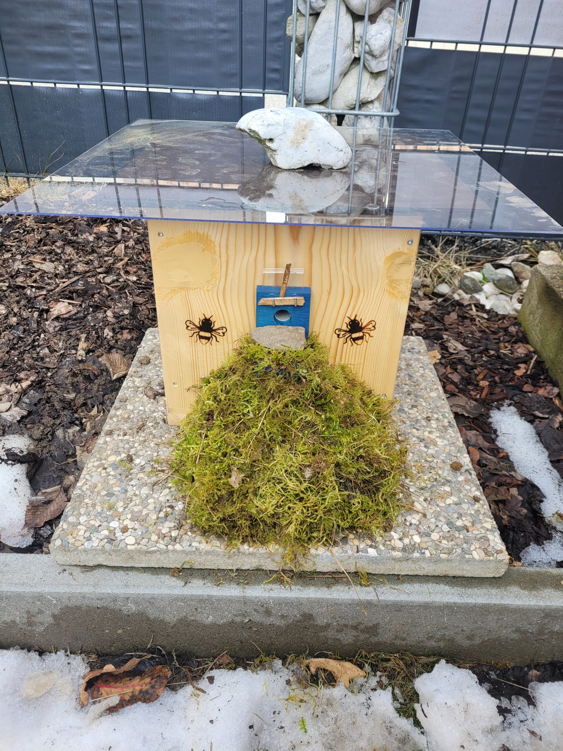 Ich finde das mit dem Moos gut, bei Steinen kann ich Garantieren dass die Hummeln zuerst alle möglichen Ritzen absucht außer das Eingangloch