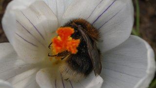 gestern war es hier bei mir auch sehr mild, die Luft allerdings schwülfeucht – und sehr, sehr windig. Von den frühen Erdhummeln war keine zu sehen, dafür entdeckte ich zu meiner Überraschung aber eine Baumhummel im Garten.