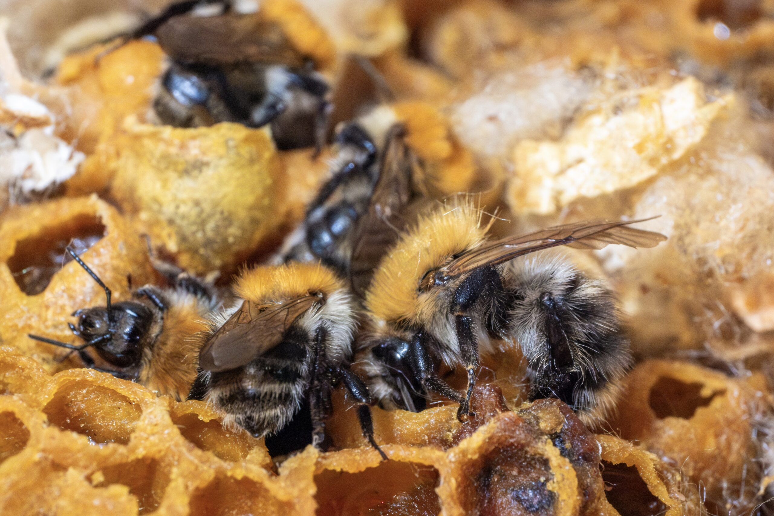 Trotzdem sind noch Larven im Nest. Deshalb füttere ich mit Pollen zu. Es erfordert viel Genauigkeit, die kleinen Pollentöpfchen im Ackerhummelnest aufzufüllen.