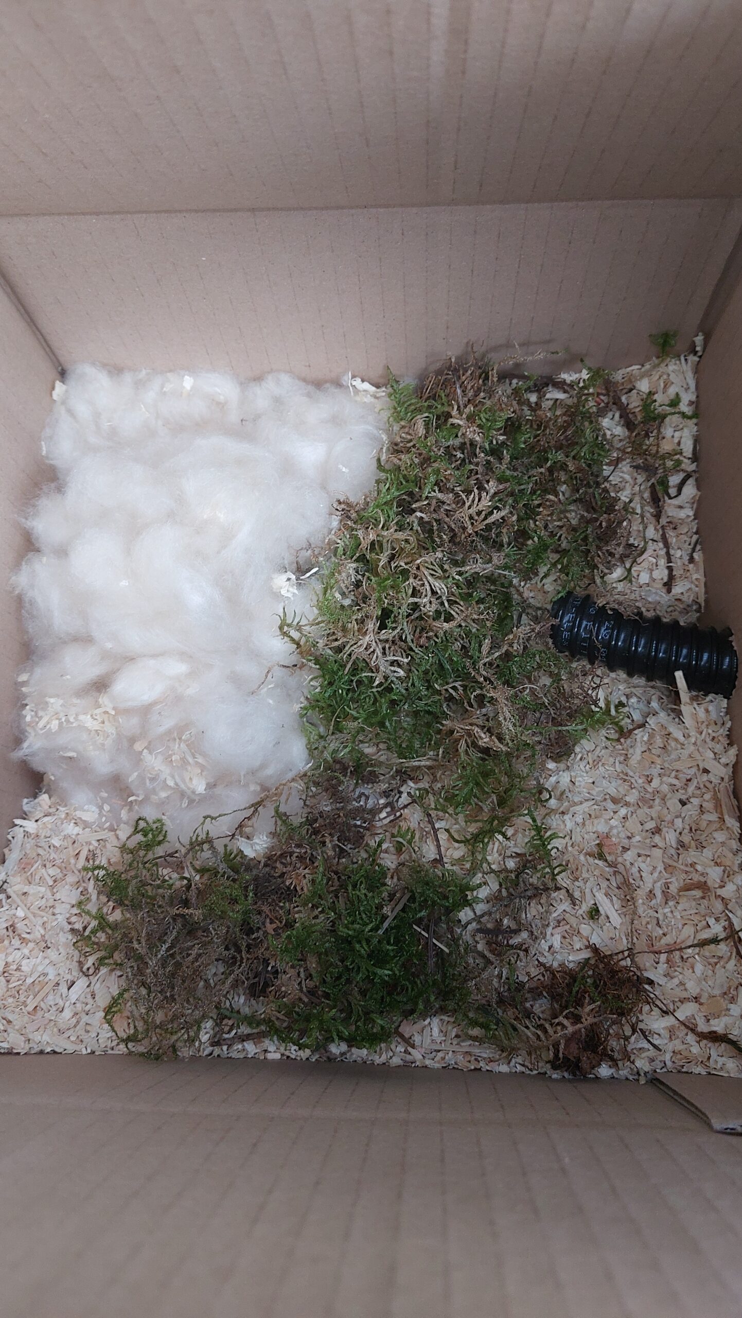 Ich konnte am Samstag und Sonntag meine 2 letzten leeren mit je einer Ackerhummel aktiv besiedeln. Das eine steht auf einem Regal über dem 1. Haus, welches seit Mitte März von einer dunklen Erdhummel mit bereits Nachwuchs bewohnt wird. Dadurch habe ich dort auf Deko verzichtet. Das 3. Haus steht rechts neben dem 1. Haus mit dem Eingang um 90 Grad verdreht zum 1. Haus. Hier habe ich mit Moos einen Hügel gebaut, um eventuell auf eine passive Ansiedlung zu hoffen. Nun holt sich die Ackerhummel seit Samstag immer wieder genau dieses Moos, beißt sich kleine Stückchen ab und schleppt es ins Innere. Ich habe bereits links und rechts um das Haus das Moos entfernt und wollte langsam am Hügel bei gehen. Soll ich es weiter reduzieren oder noch warten? Bis wann hat sie ihr Nest eingerichtet? Auch im Inneren habe ich eine gute Handvoll Moos verteilt, welches sie wie eine Mauer zwischen Einlauf und Kapok gebaut hat. Ich müsste das Haus nähmlich auf die Steine und den Untersetzer stellen, damit die Ameisen nicht an die Zuckerlösung gehen, welche die Ackerhummel angenommen hat. Da ich noch Neuling bin, fehlt mir da leider die Erfahrung.