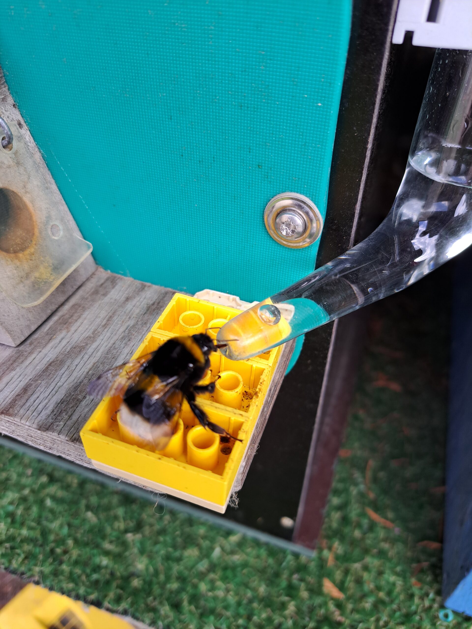 @Hummelfreunde – hatte heute ein besonderes Erlebnis. Fuhr mit dem Rad zu einer nahen Wiese, um Hasenfutter zu pflücken. Da sah ich eine Hummel im Suchmodus, es war eine schwarze Veränderliche der Tristis-Art. Habe die Königin mit der Hand gefangen, per Rad heimgebracht und in einen Nistkasten angesiedelt. Sie war etwa eine halbe Stunde drinnen und verließ dann den NK mit einem schönen Orientierungsflug. Sie ist aber (noch) nicht zurück gekommen, aber humilis ist eine besondere Art, und die Hoffnung lebt. Konnte schon einmal eine Veränderliche aktiv ansiedeln, habe sie aber dann leider durch das zu frühe Schließen des Vorbaus wieder verjagt. Es war mit mein 2. passiver Ansiedlungsversuch in dieser Saison (1 x vergeblich Steinhummer). Mal sehen…