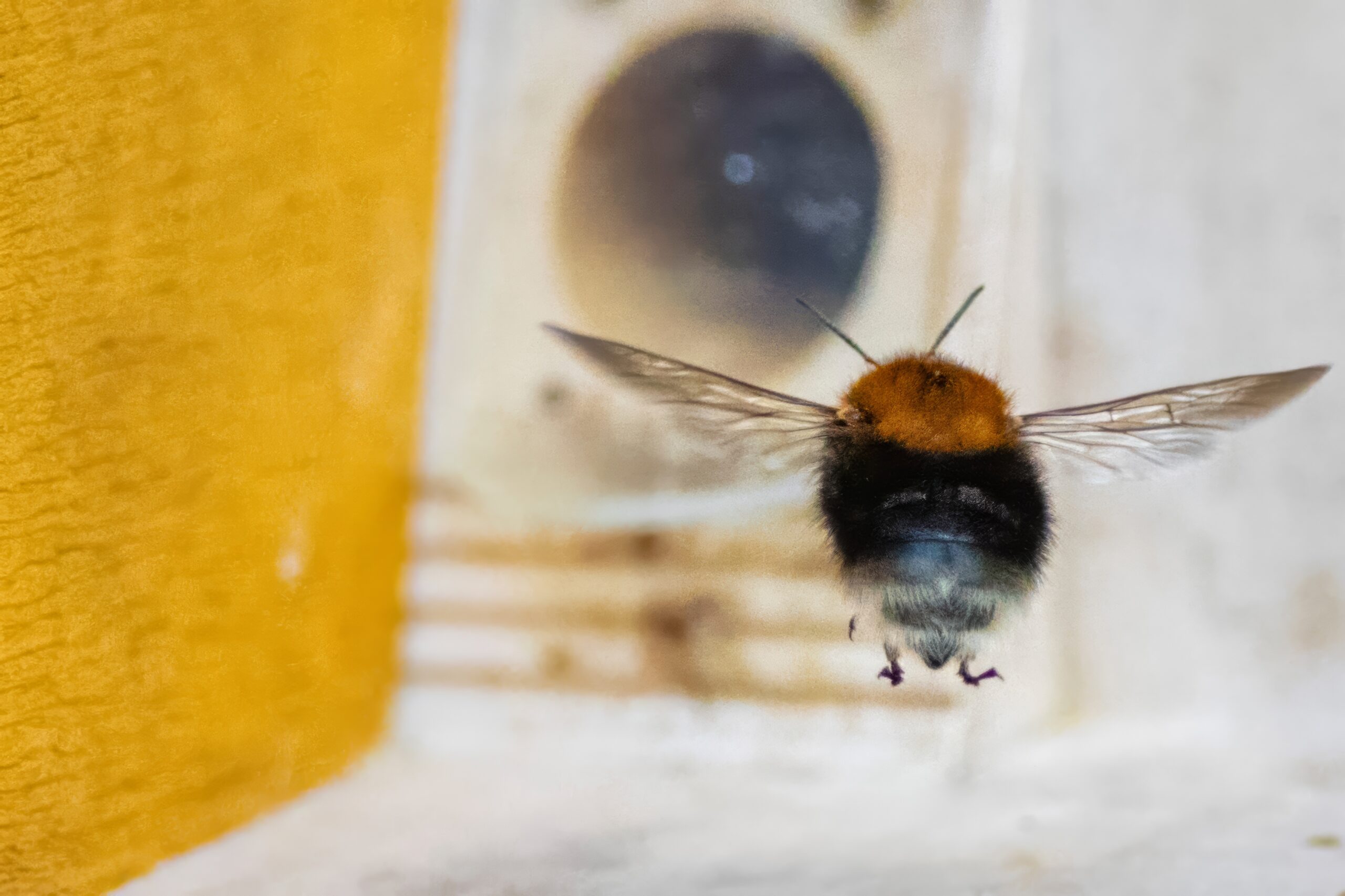 Große Erdhummel im Franz-Kasten: reger Flugverkehr.