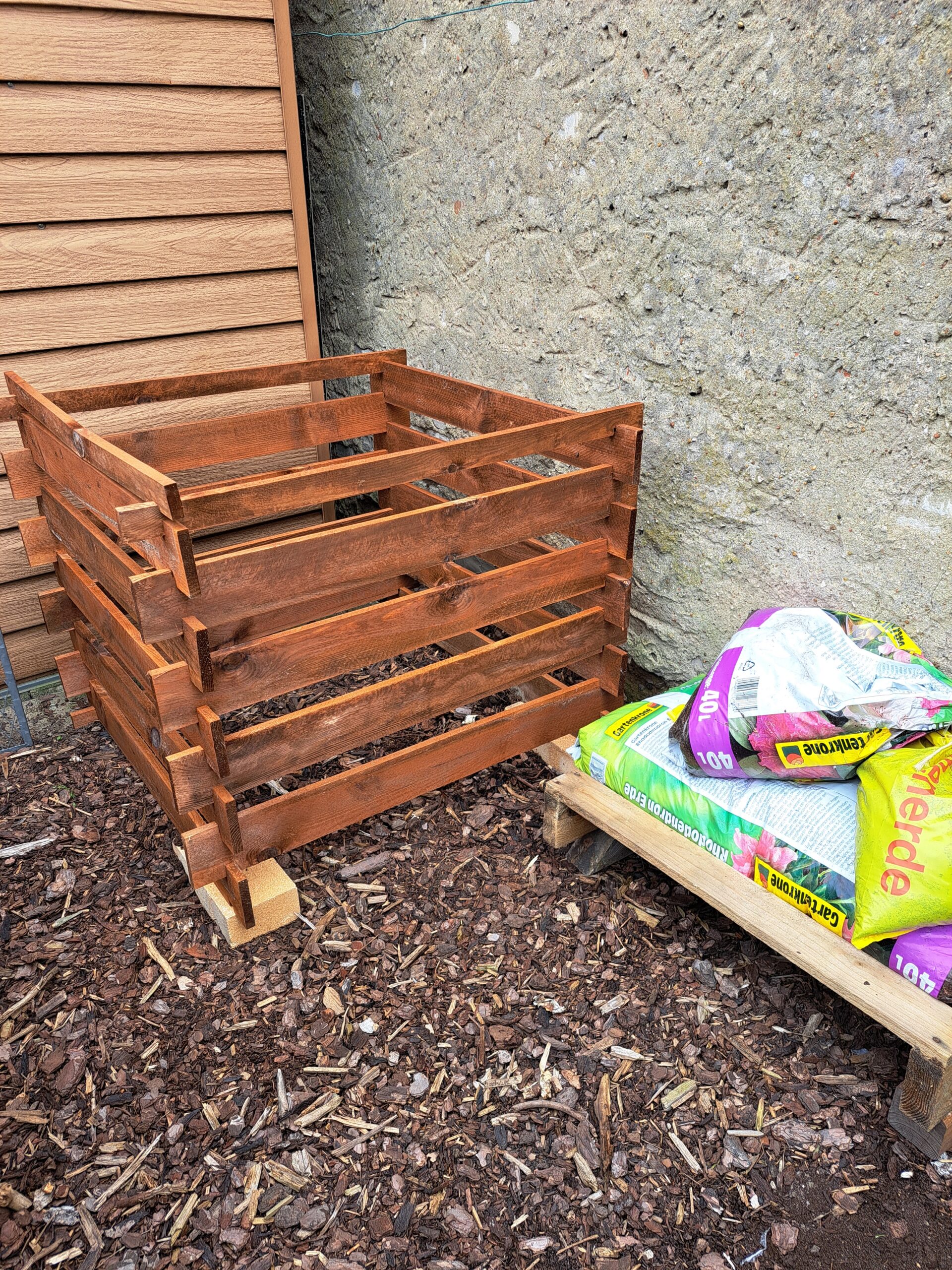Und eine ausgediente Holzpalette bekommt auch noch eine Laubschicht drunter. Dann ist es aber auch gut.