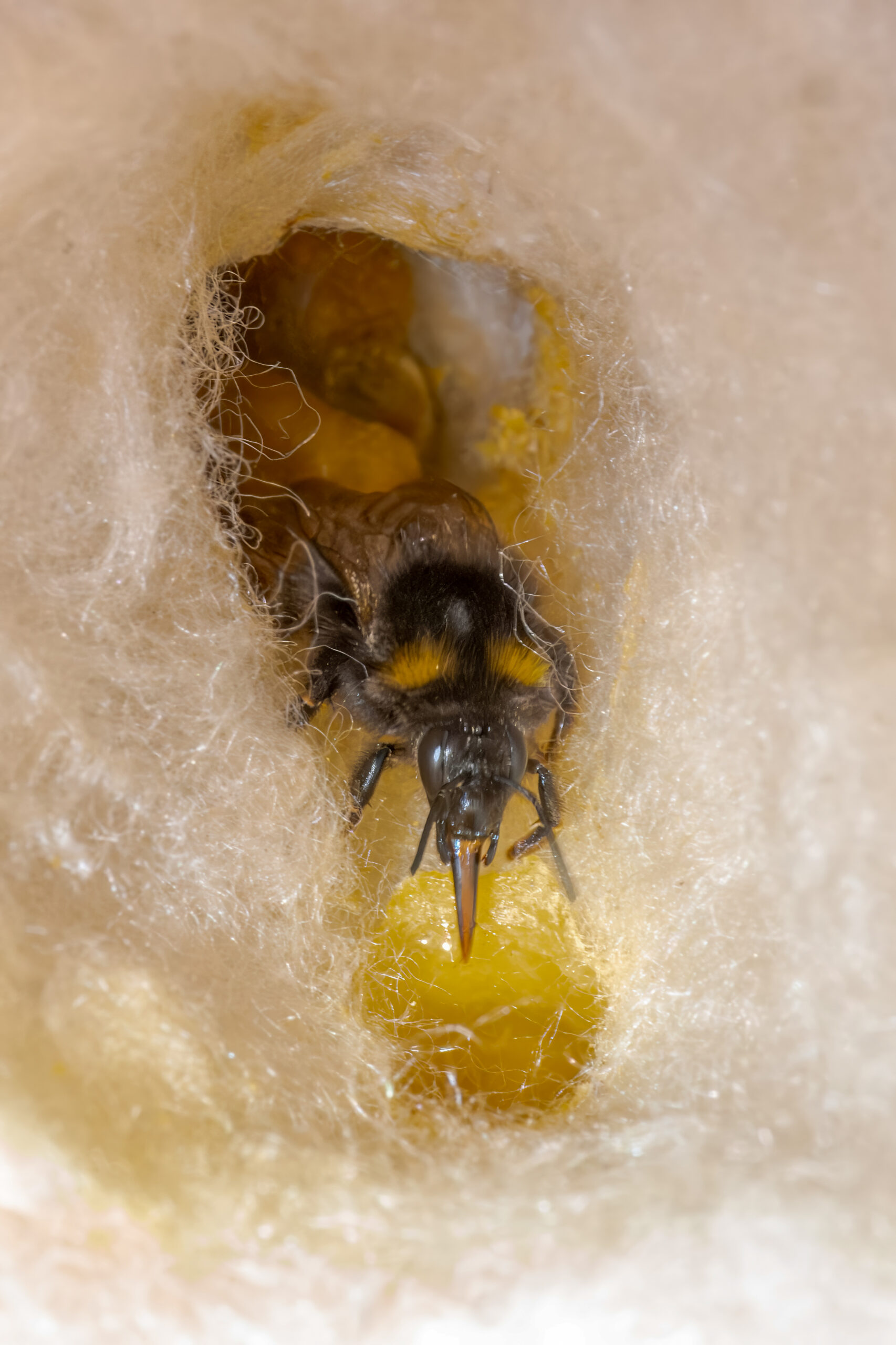 heute waren viele suchende Ackerhummeln und zwei Gartenhummeln am Hummelstand unterwegs. Ich freue mich über 14 Ansiedlungen (5x Wiesen-, 4x Erd-, 3x Acker-, 2x Baumhummel). Zwei Ackerhummeln haben sich während unseres Urlaubs passiv angesiedelt. Bei elf Nestern fliegen bereits Arbeiterinnen. Anbei ein Foto der Wiesenhummel im Knastladenkasten. Dort fliegen seit heute ebenfalls Arbeiterinnen. 😊