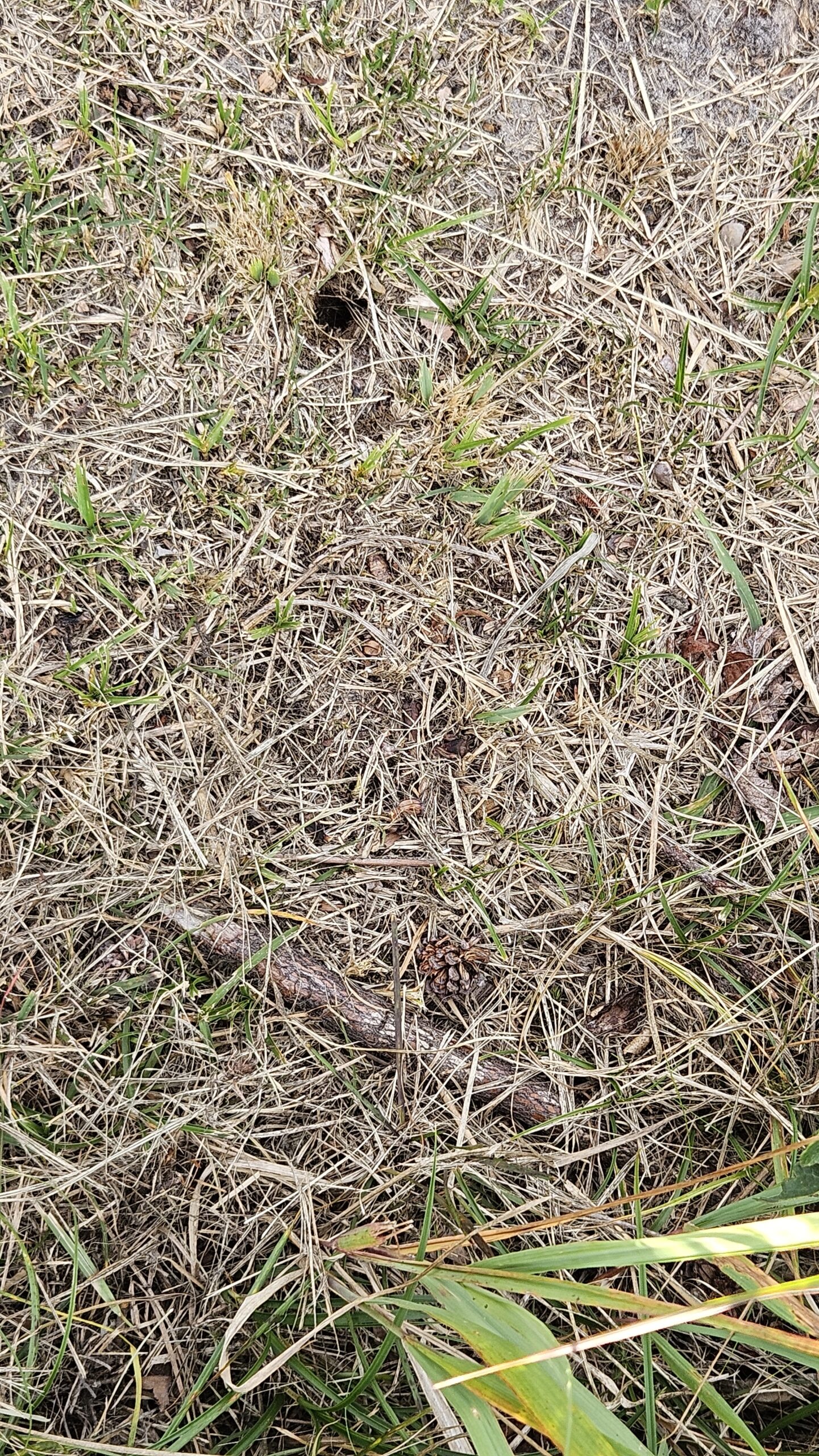 Sind für 2 Wochen auf Laesö in Dänemark. Auffällig ist, daß wir hier nur Jungköniginnen von Erd-u. Gartenhummeln sehen. Keine einzige Arbeiterin. Durch Zufall sah ich auf dem Rasen am Haus eine Hummel im Boden verschwinden. War zu weit weg, um die Art zu bestimmen. Dann entdeckte ich das Mauseloch gem. Foto. Bei div. Beobachtungen war keine Bewegung mehr zu beobachten. Schade. Ackerhummeln fliegen hier noch viele. Es blüht sehr viel in der Natur und in den Gärten.