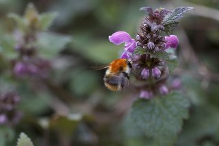 Ich konnte 2 Ackerhummelköniginnen an der purpurroten Taubnessel, Schlüsselblume und Gundermann beobachten, sowie einige andere Wildbienen. Außerdem habe ich eine Gartenhummel und eine Wiesenhummel gesehen und 2-3 dunkle Erdhummeln.