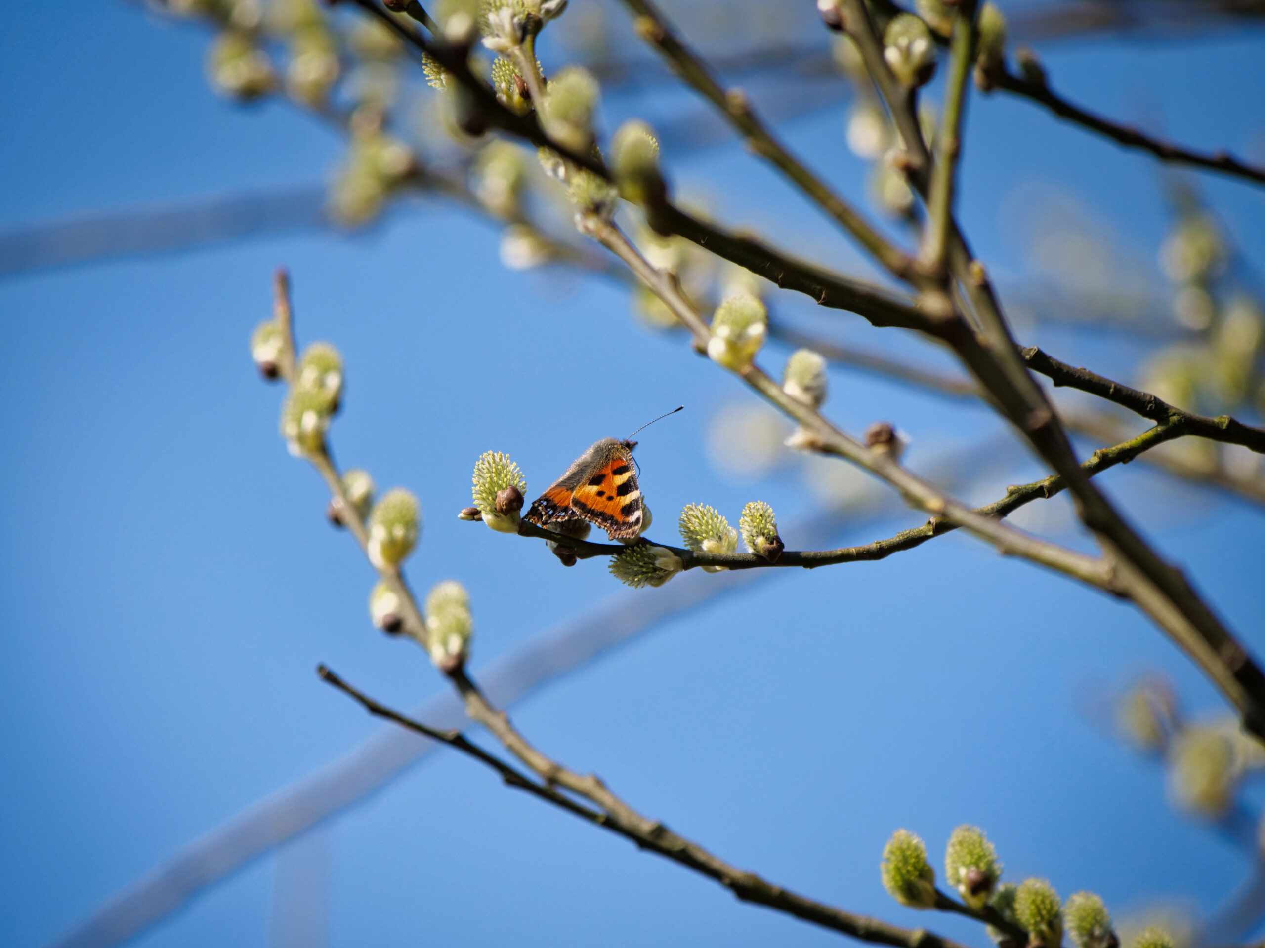 Grüne Nieswurz, Kleiner Fuchs, Wald-Schlüsselblume, Sonnenuntergang bei Saharastaub, Zweiblättriger Blaustern, Hausrotschwanz Weibchen, Buschwindröschen, Lungenkraut, Küchenschelle, Schachbrettblume, Scharbockskraut, Gundermann, Duftveilchen