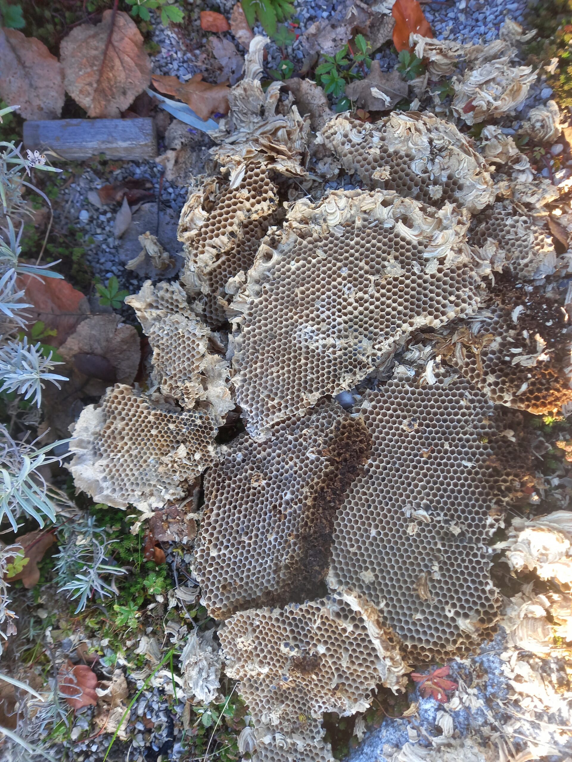 Hätte ich nicht gedacht, dass so ein großes Wespennest im Hummelnistkasten entstehen kann.@Martha ein sehr wichtiger und guter Hinweis! Habe auch viel stehen lassen. Die Wildblumenwiese habe ich abgesenst ansonsten eigentlich alles stehen gelassen bis auf die Wege. Brennesseln werden den Winter über stehen, viele verblühte Stauden mit unzähligen Samen wie Wegwarten, Wiesen-Flockenblumen, Wilde Karden, Klebriger Salbei, Witwenblumen etc. wo sich noch immer viele Tiere unter anderem Vögel aber sicher auch Mäuse etc. bedienen.