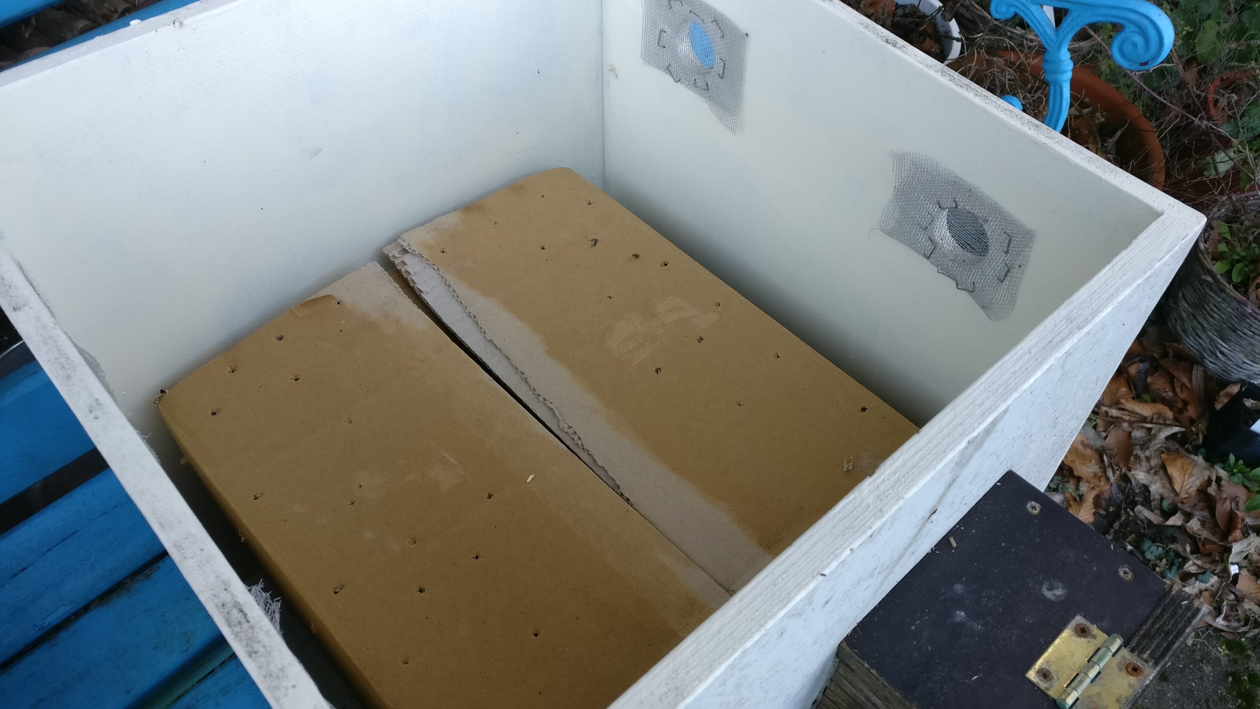 ich habe gerade den Hummelkasten von meinem Bruder vom Garagendachboden geholt. Der war letztes Jahr unbesetzt geblieben also haben wir den einfach komplett so wie er war am Ende der Saison weggestellt.