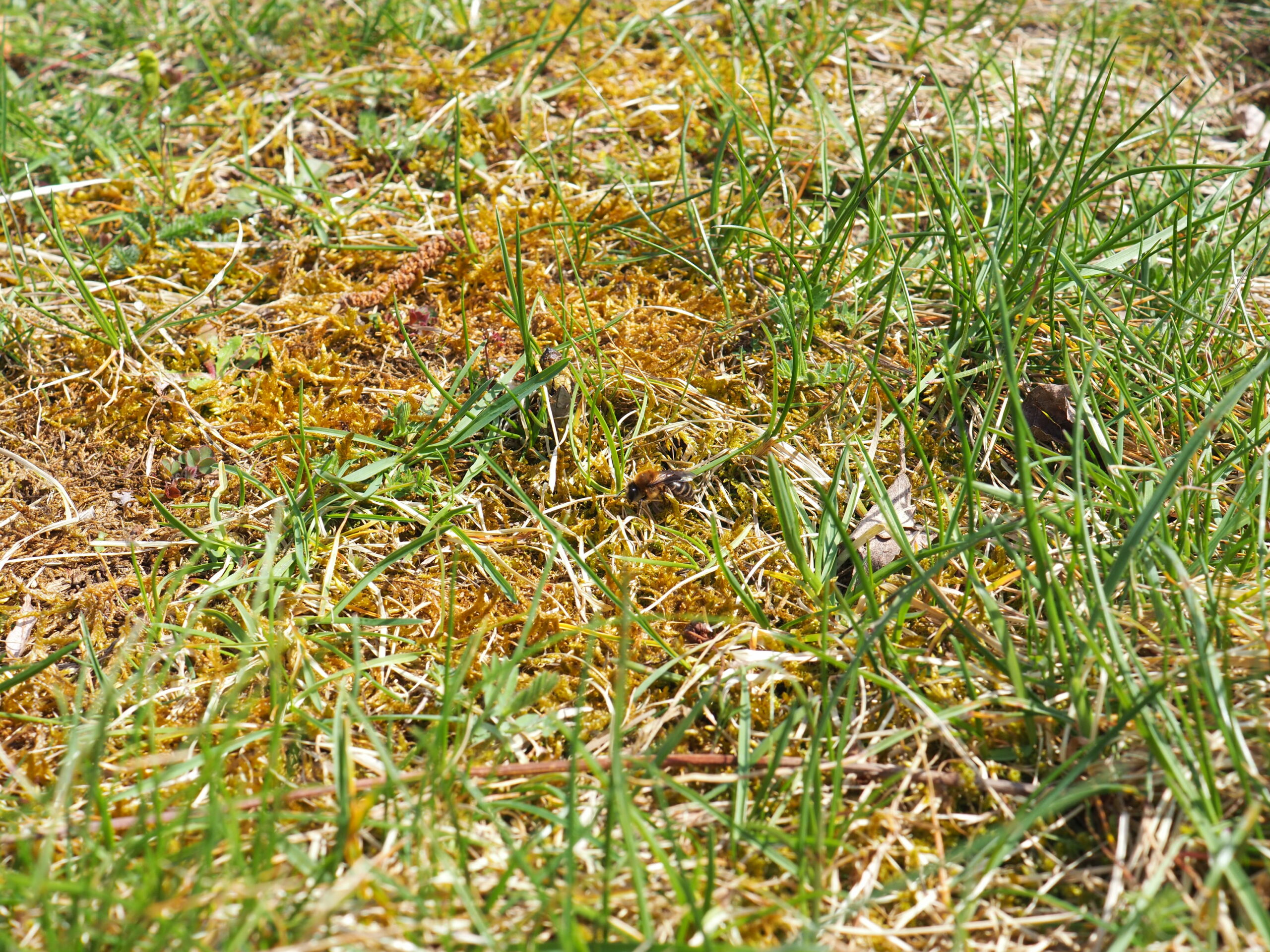 Außerdem gibt es einige bewuchsfreie Stellen bei uns im Rasen, wo jedes Jahr Sandbienen ihre Nester graben.