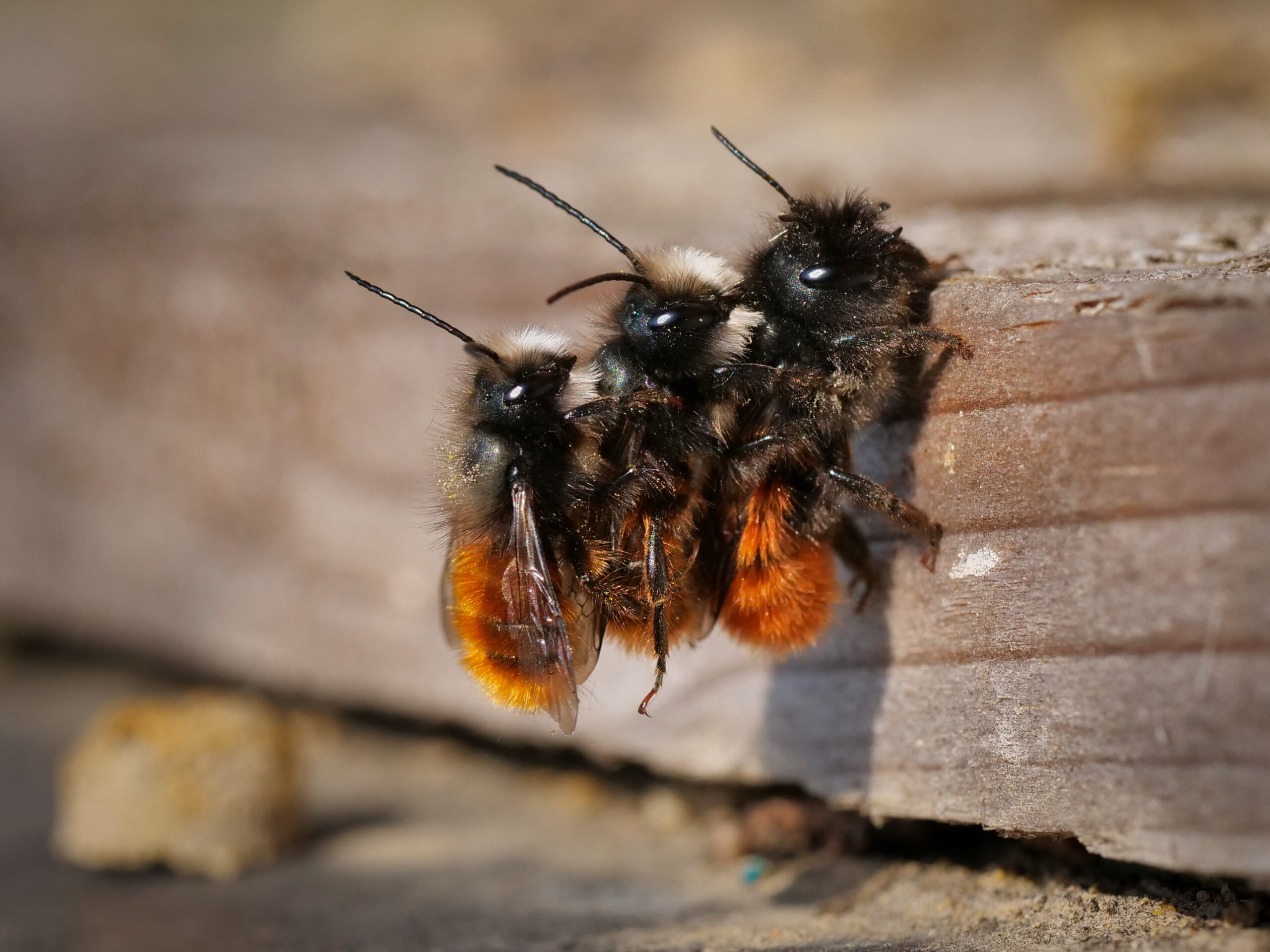Die Weibchen der Mauerbienen kommen sicher auch bald raus, ich freue mich schon.