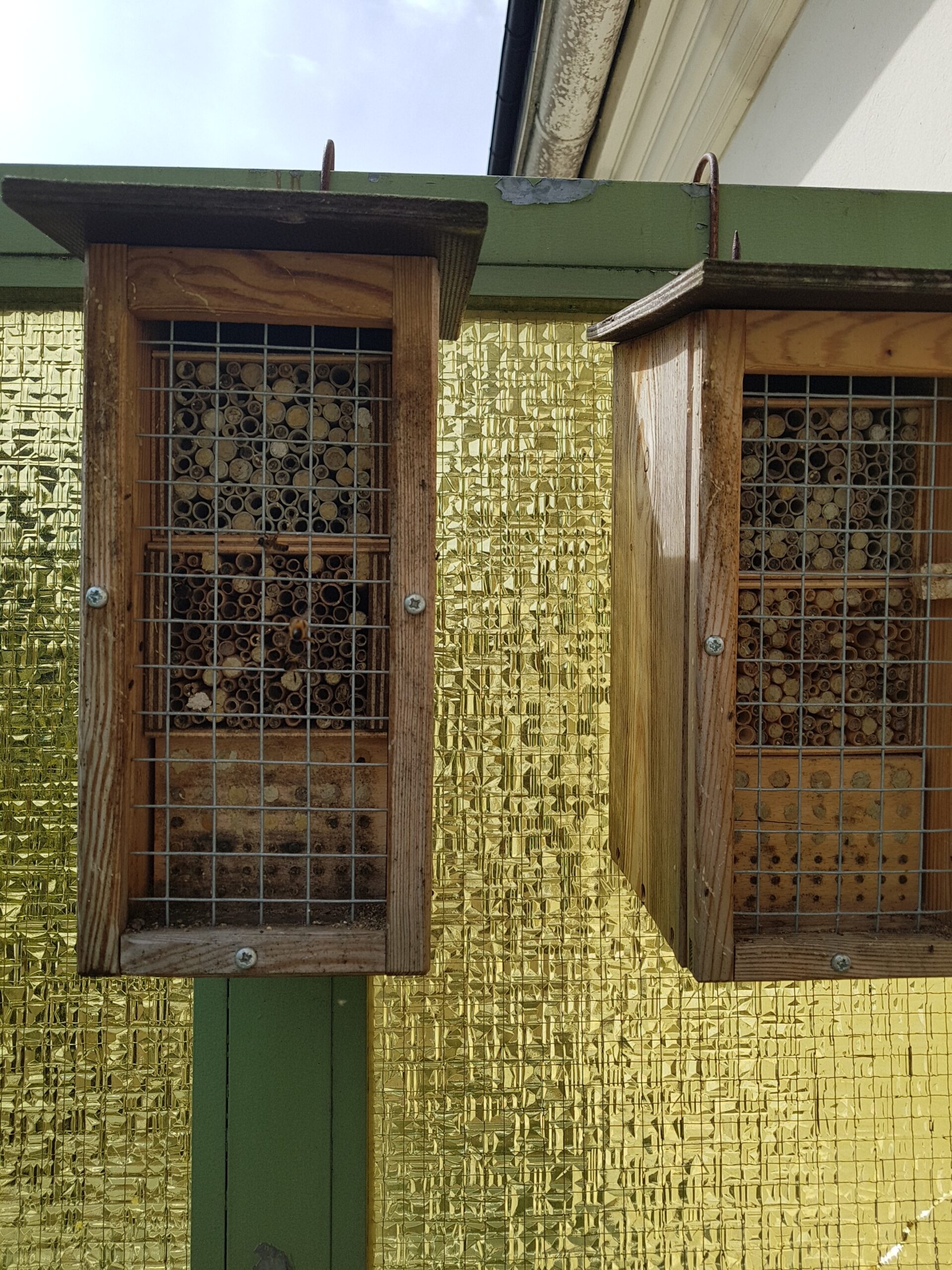 Deine Nisthilfen sehen gut aus. Was hast du denn in dem Stein? Sind das plastikstrohhälme?