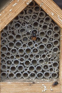 Um das herauszufinden ob die Röhren noch bewohnt sind kann man am im Herbst die Nestverschlüsse mit Farbe (Tuschkasten) anmalen. Was im Herbst darauf noch die selbe Farbe hat kann man reinigen.
