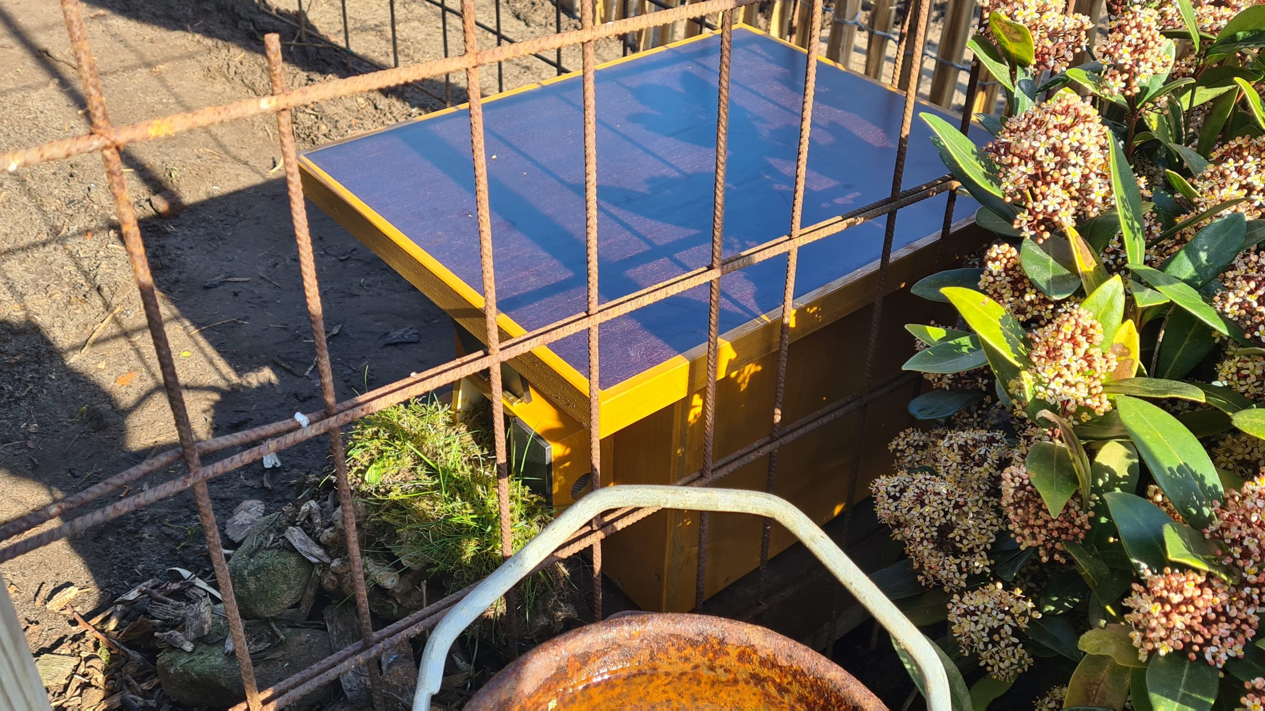 Und dann musst Du unbedingt für Schatten sorgen. Hummeln können das Haus nicht kühlen wie Bienen, das ist bei Hummeln völlig anders. Wenn im Sommer die Sonne auf das Haus knallt sind drinnen schnell über 40 Grad, das ist das Ende von jedem Hummelnest.