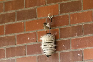 Spatzen und Meisen sehe ich da mehr an den Meisenknödeln. Wie überhaupt zur Brutzeit. Die benötigen da mehr Fettfutter weil sie mehr fliegen. Auch Jungtiere werden dann zu den Meisenknödeln mitgenommen.