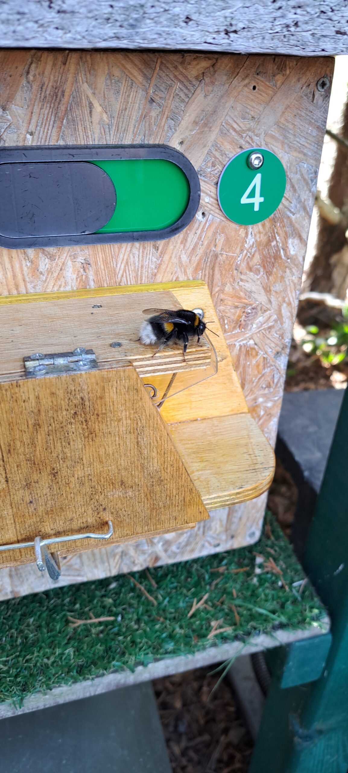 .Bei den anderen 3 Kästen hab ich inzwischen die Klappen geschlossen, dass die späteren Arten auch eine Chance haben bzw. ist der eine große Kasten sowieso wieder für die Tonerdhummel reserviert