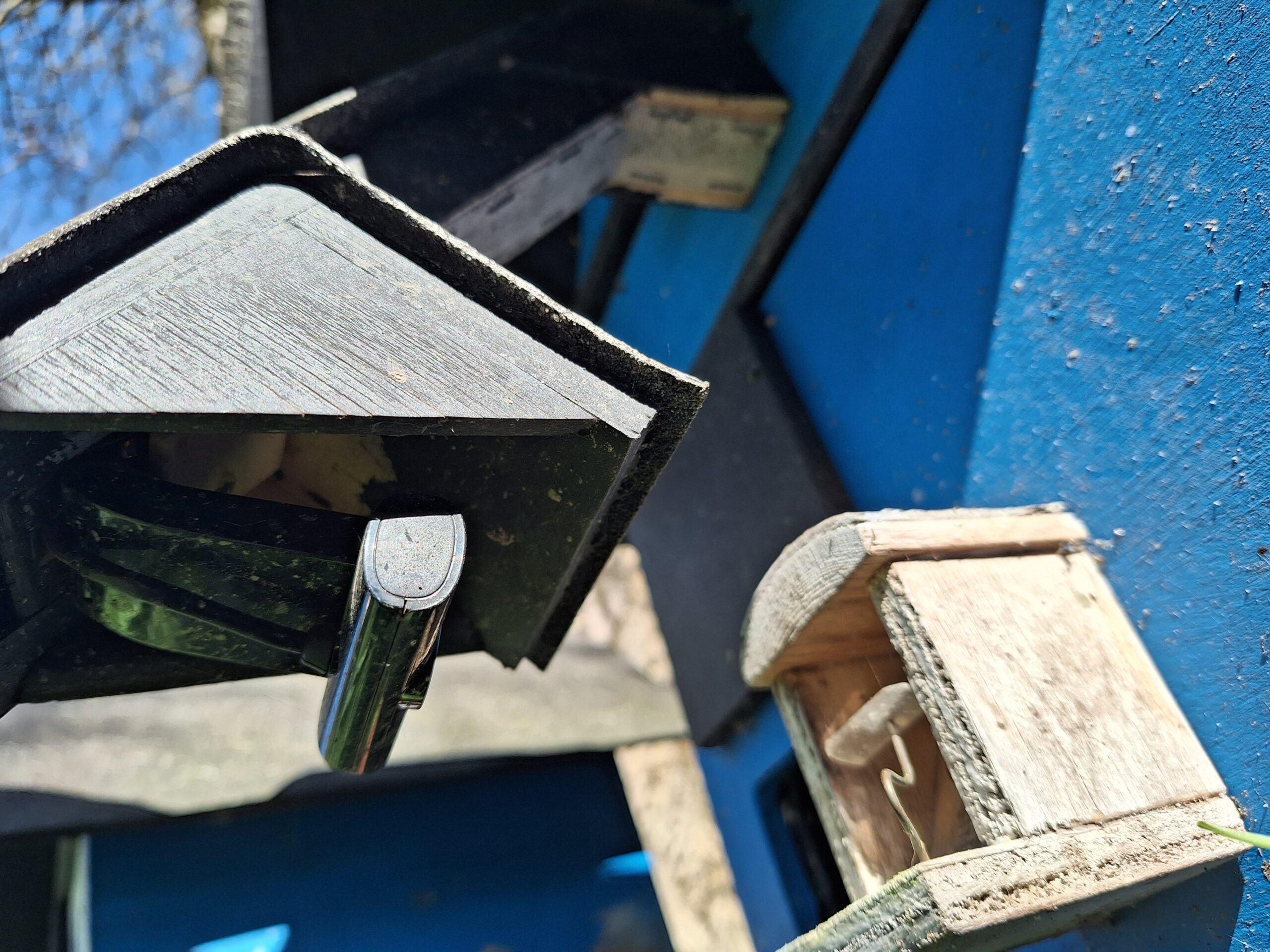 Da ich letztes Jahr erst mitten in der Saison angefangen hatte, Ein- und Ausflüge per Handy-IP-Cam aufzunehmen, war das seinerzeit alles etwas provisorisch helb wacklig aufgebaut. Das sollte jetzt nun anders werden und es sind ja ggf. auch 2 HH gleichzeitig in Beobachtung zu nehmen.
