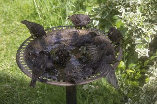 Die Vögel wissen schon, wie sie an ihre (Lieblings-)Nahrung kommen. Hier ist es momentan eine Spatzenkolonie, die Rosen und Hibiscus von Blattläusen befreit.