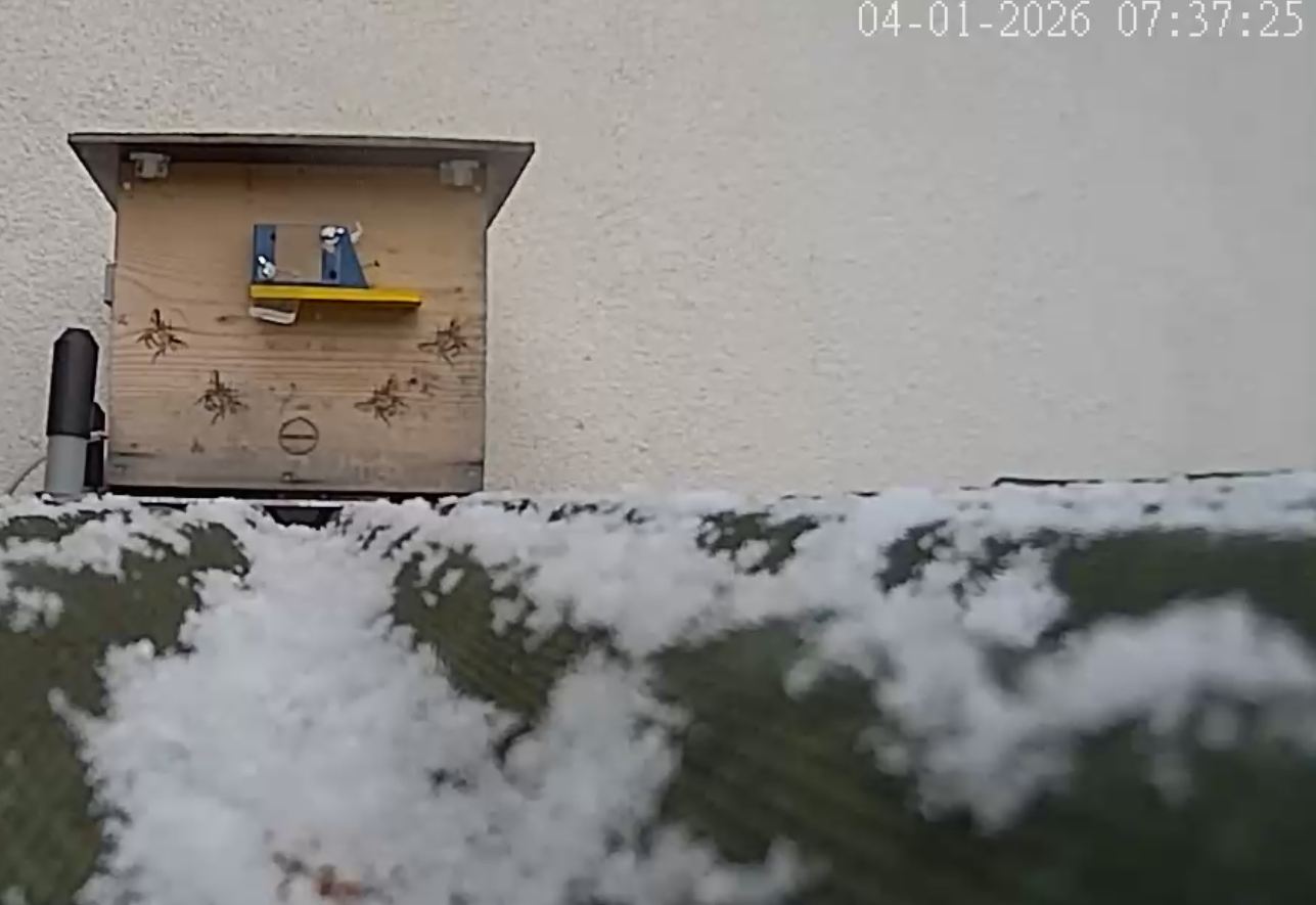 Die Suchende war ja doof… 2m daneben steht eine freie Kiste1.Heute früh hat eine Arbeiterin die Lage geprüft. Bei -2°C draussen