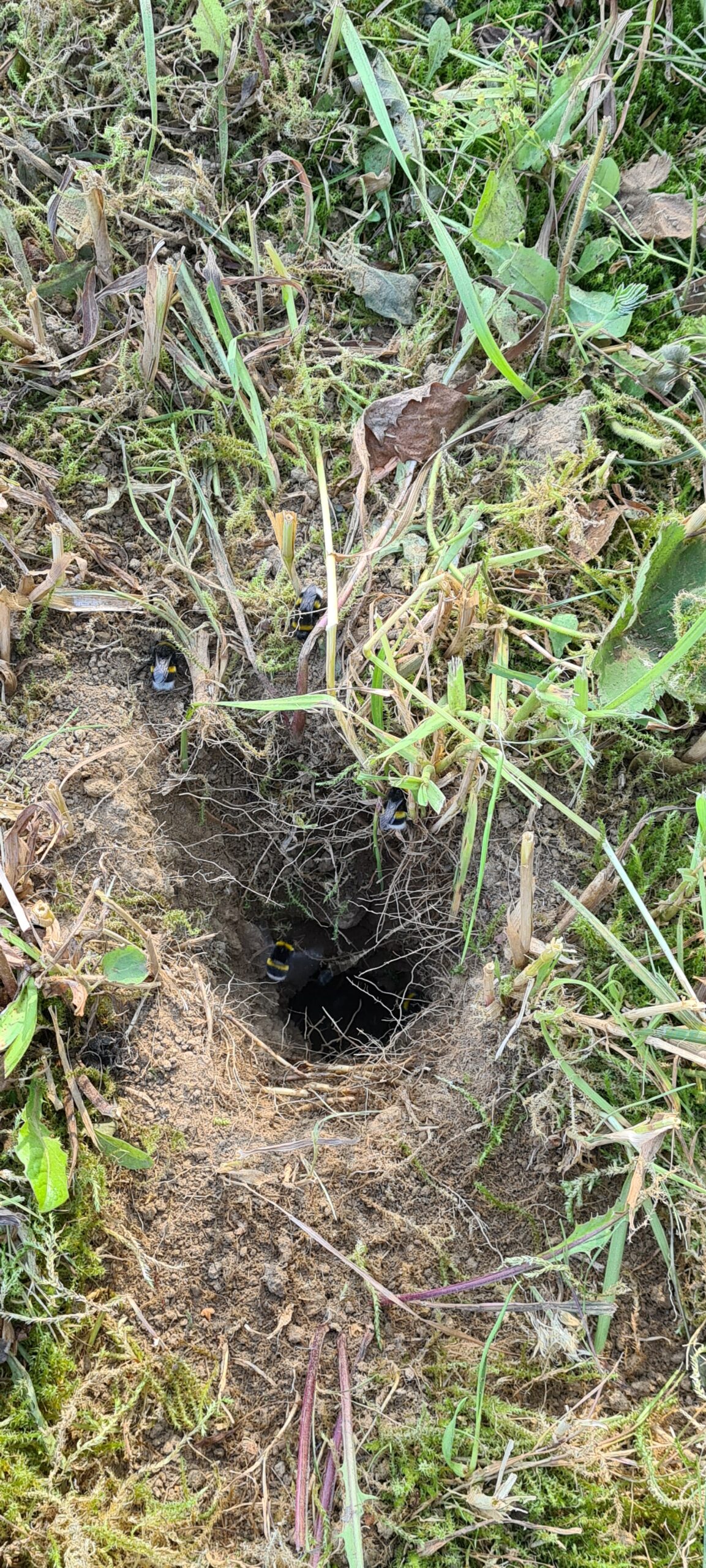 Hummeln nisten gerne in verlassenen Mäusenestern. Diese haben einen oder mehrere Ausgänge.