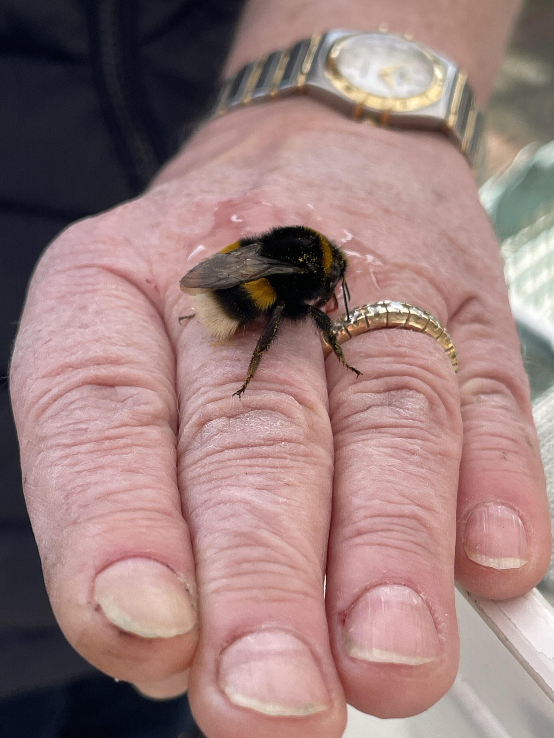 Habe heute Morgen eine Erdhummel Königin gesichtet, die direkt neben mir in unseren 40 Liter Bottich mit Wasser flog. So konnte ich sie sofort vor dem Ertrinken retten. Nach einer kurzen Verschnaufpause flog sie steil Richtung Himmel davon.