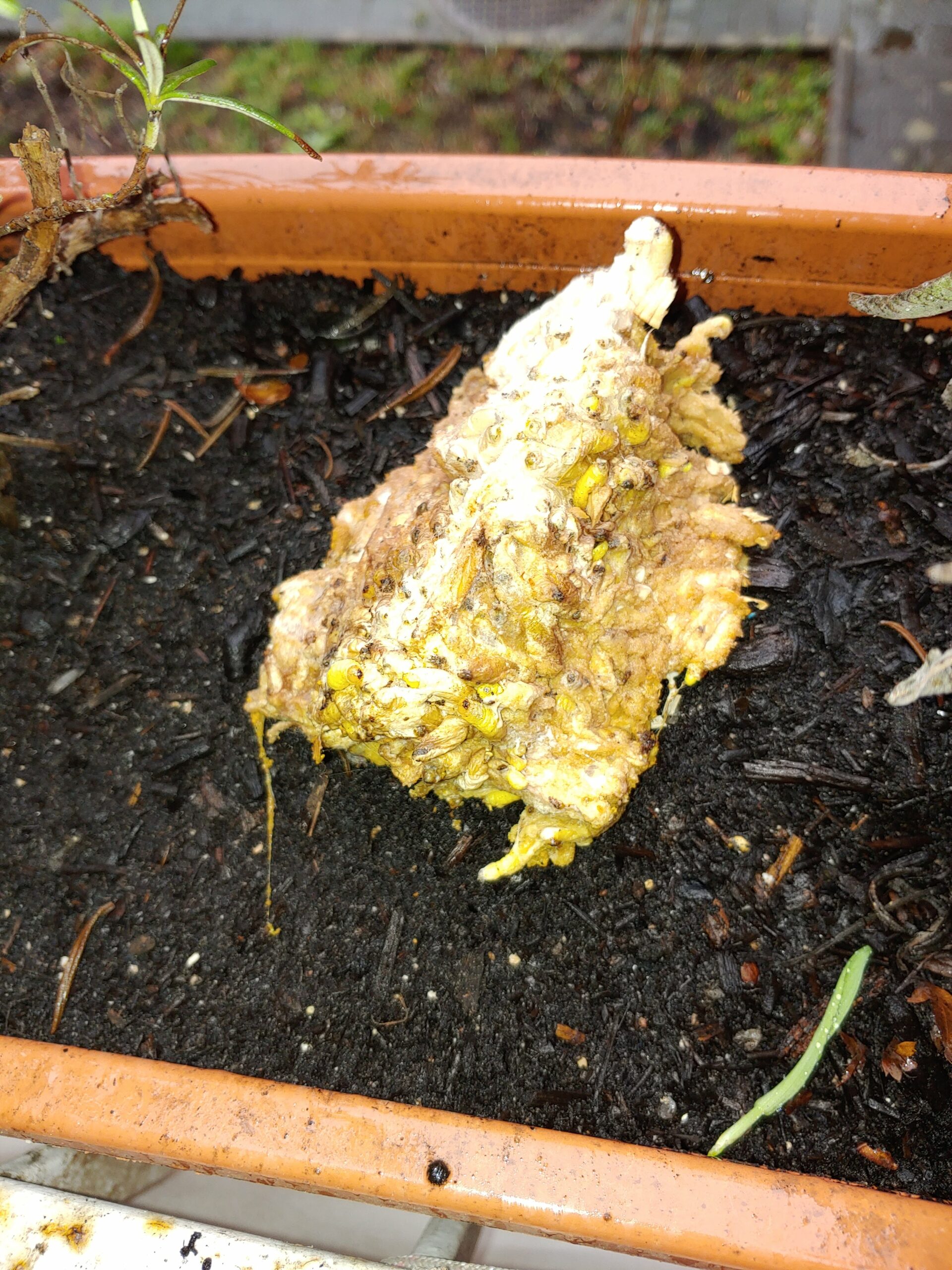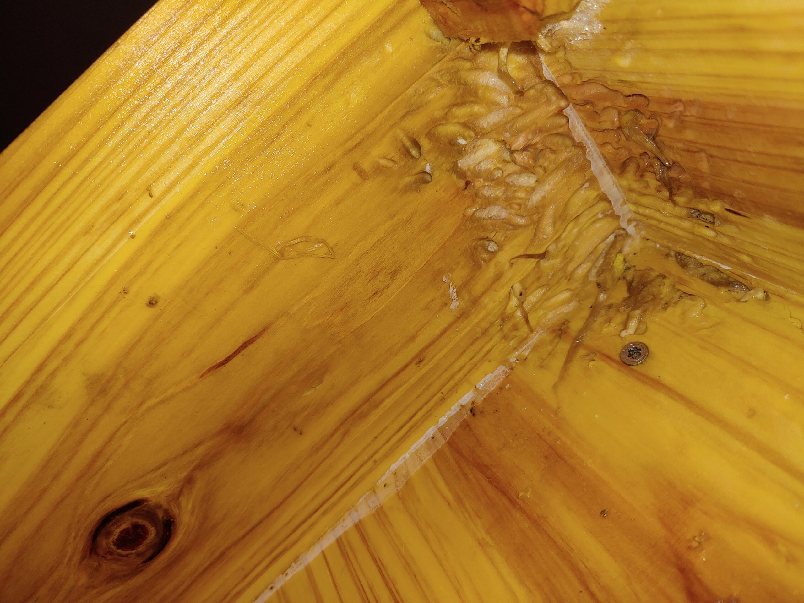 Heute habe ich das Hummelhotel geöffnet um es zu reinigen und für die nächste Saison zu befüllen – Schock, als ein ziemlich massives Gespinst in der oberen Ecke zu finden war. Mit der Schaufel musste ich es raushebeln und feststellen, dass es voller gelber Maden war. Das Holz haben die Viecher offenbar auch angefressen. Kurze Recherche ergab natürlich: Wachsmottenbefall! :cry:   Meine armen Hummeln…